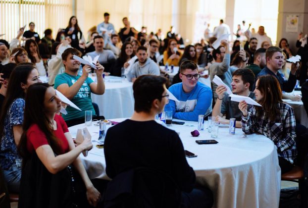 Restaurantul Universitar Politehnica a găzduit luni, 11 aprilie 2022, concursul de cultură generală PoliCult, organizat de studenții anului II ai Specializării Comunicare și Relații Publice, din cadrul Facultății de Științe ale Comunicării a UPT. Evenimentul a fost adresat tuturor studenților din Universitatea Politehnica Timișoara și, spre bucuria organizatorilor, 17 echipe a câte 4 concurenți au răspuns invitației.