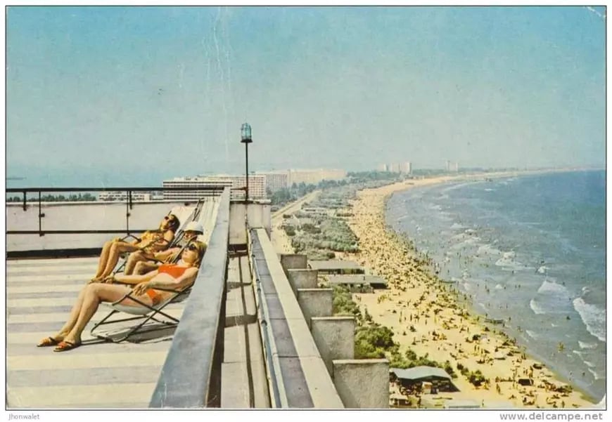 Imagine pe o carte poștală ilustrativă pentru litoralul românesc în perioada comunismului