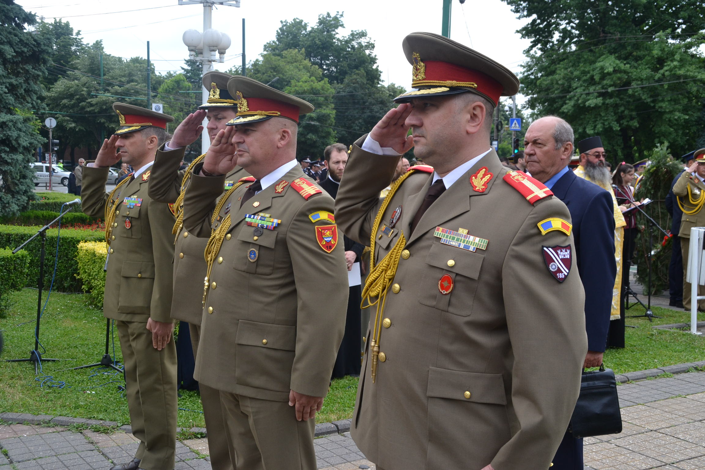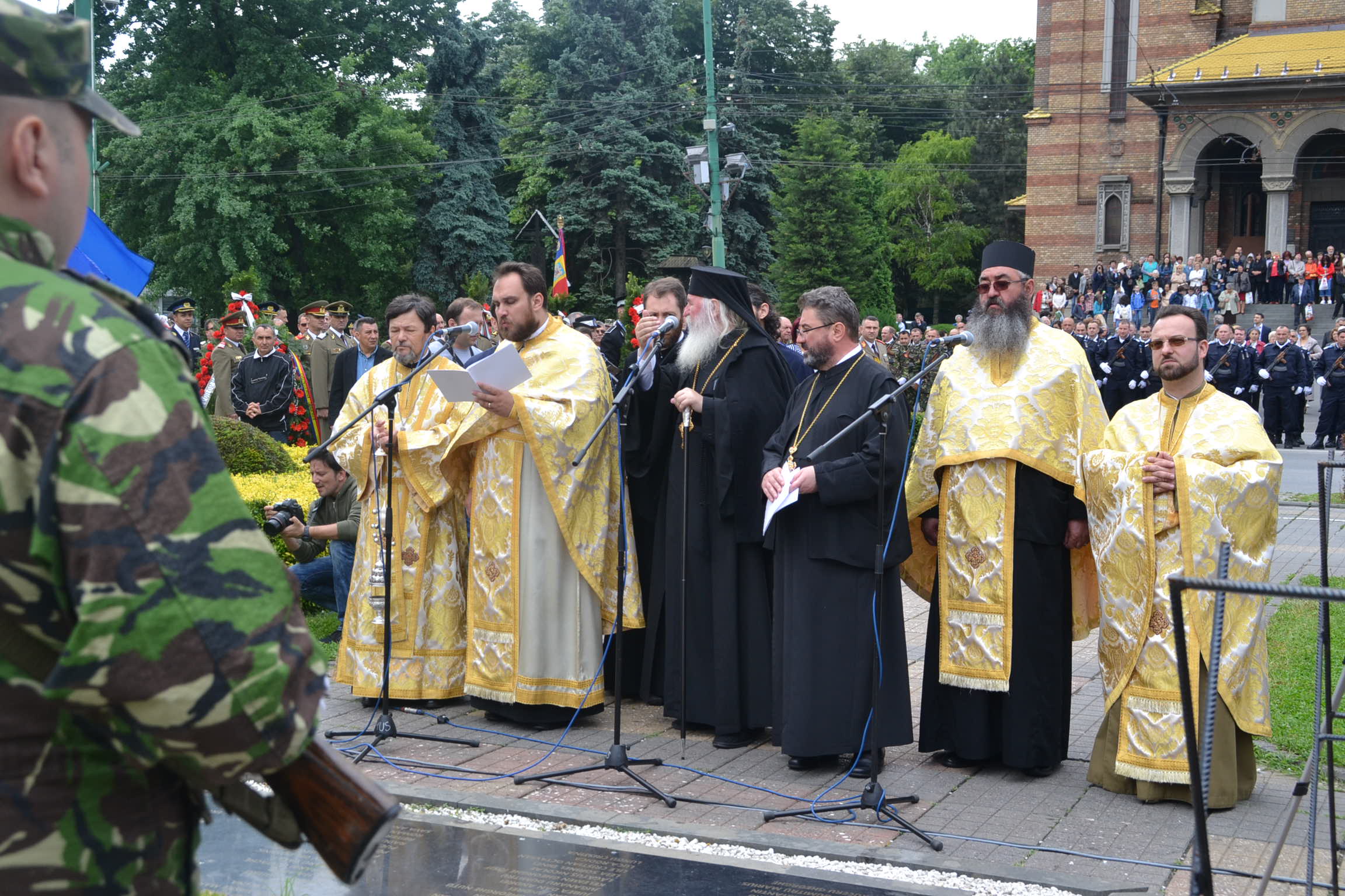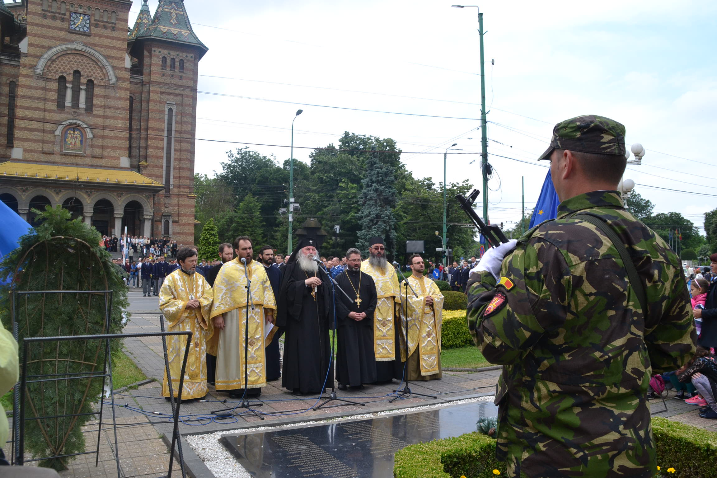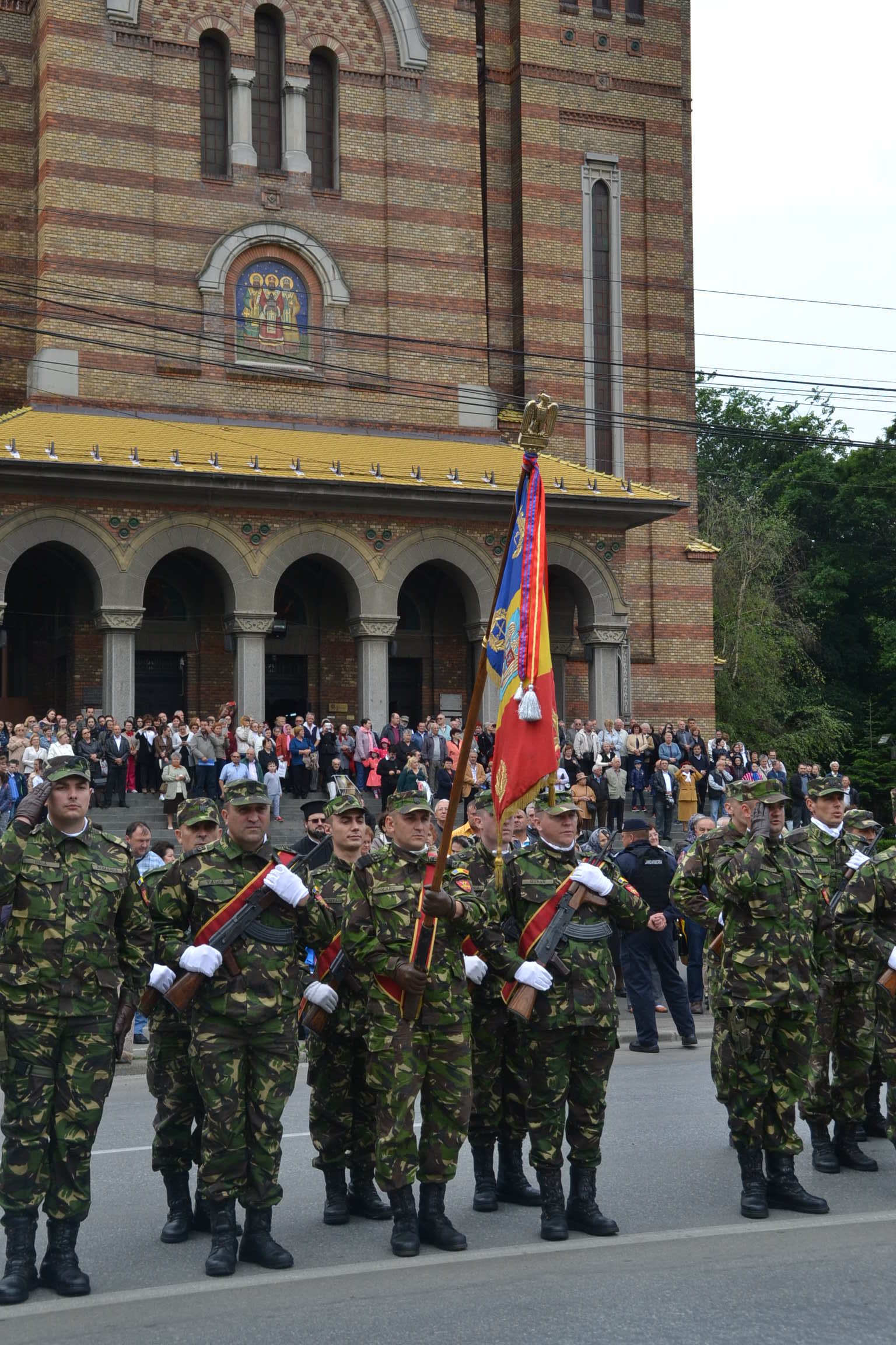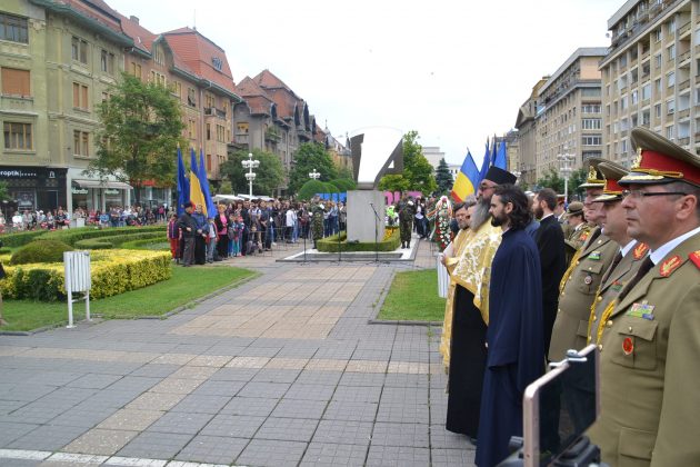 La monumentul din fața Catedralei au depus coroane de flori autoritățile dar și militarii din garnizoana Timișoarei. Nu au lipsit asociațiile de veterani ce și-au adus aminte de camarazii lor. La final o gardă de onoare formată din militarii mai multor structuri atât de la Ministerul Apărării cât și de la cel de Interne au defilat prin fața asistenței.