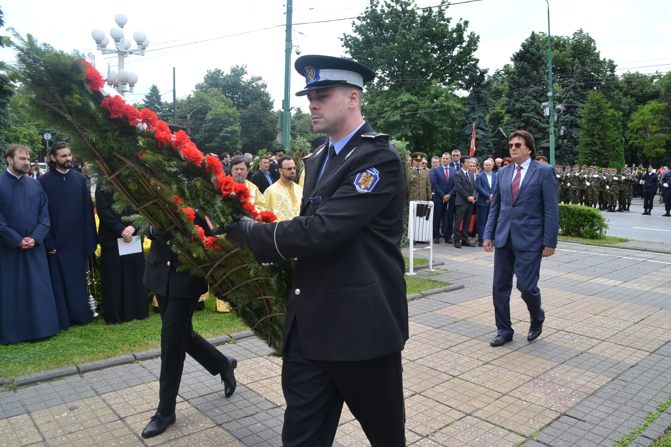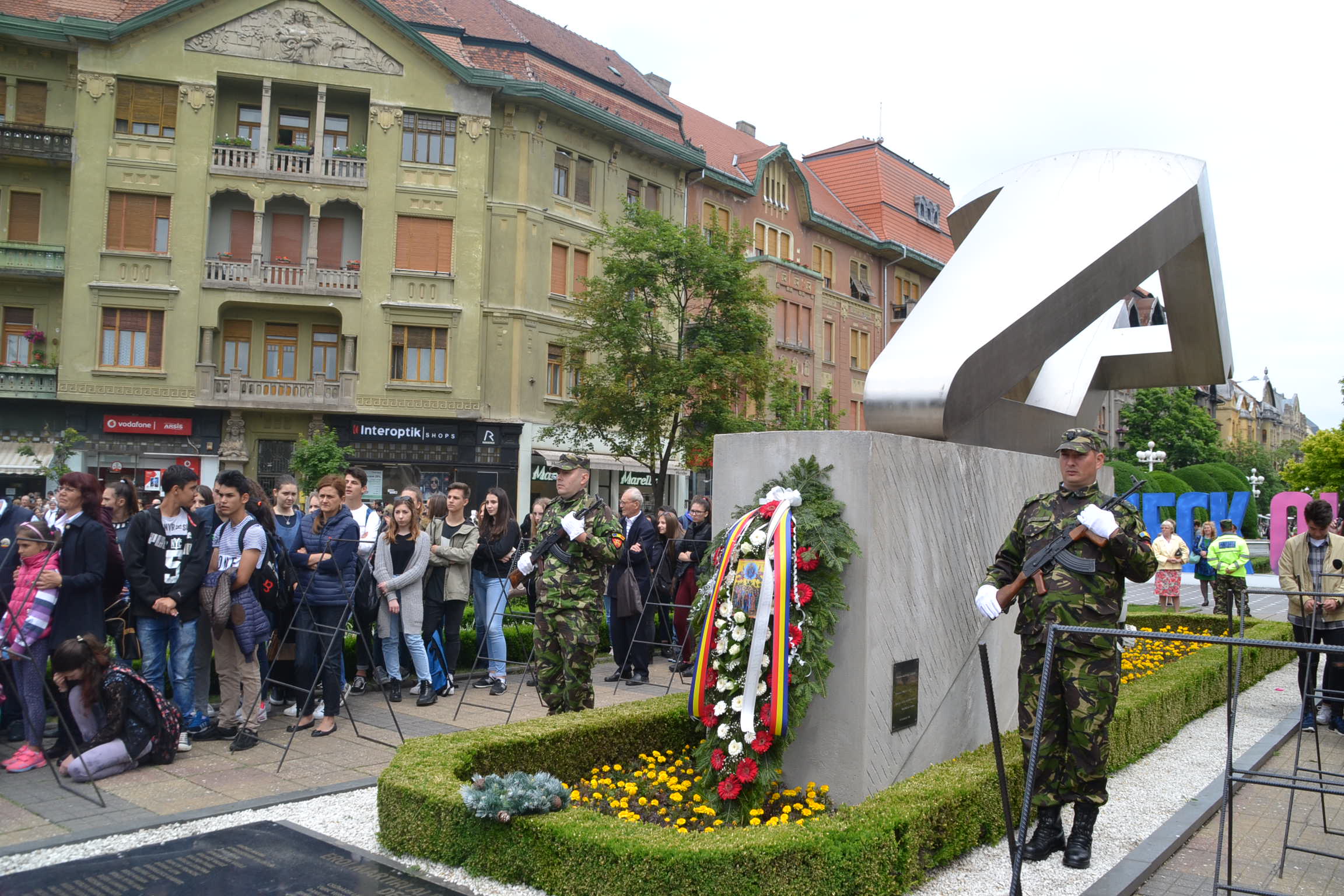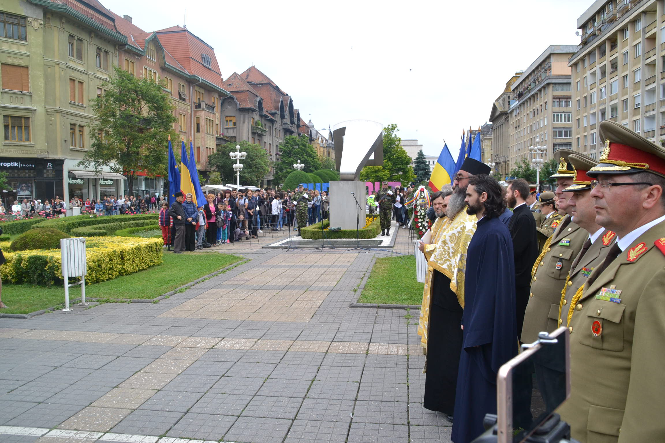 De la ora prânzului au început pregătirile de la monumentul Crucificării din Piața Operei. Aici și-au dat întâlnirea autoritățile locale și județene, reprezentanți ai corpului dipolomatic, parlamentari, veterani de război și ai altor operațiuni militare mai recente, elevi și mulți cetățeni ce au vrut să aducă un prinos de recunoștință celor ce au plecat dintre noi.
