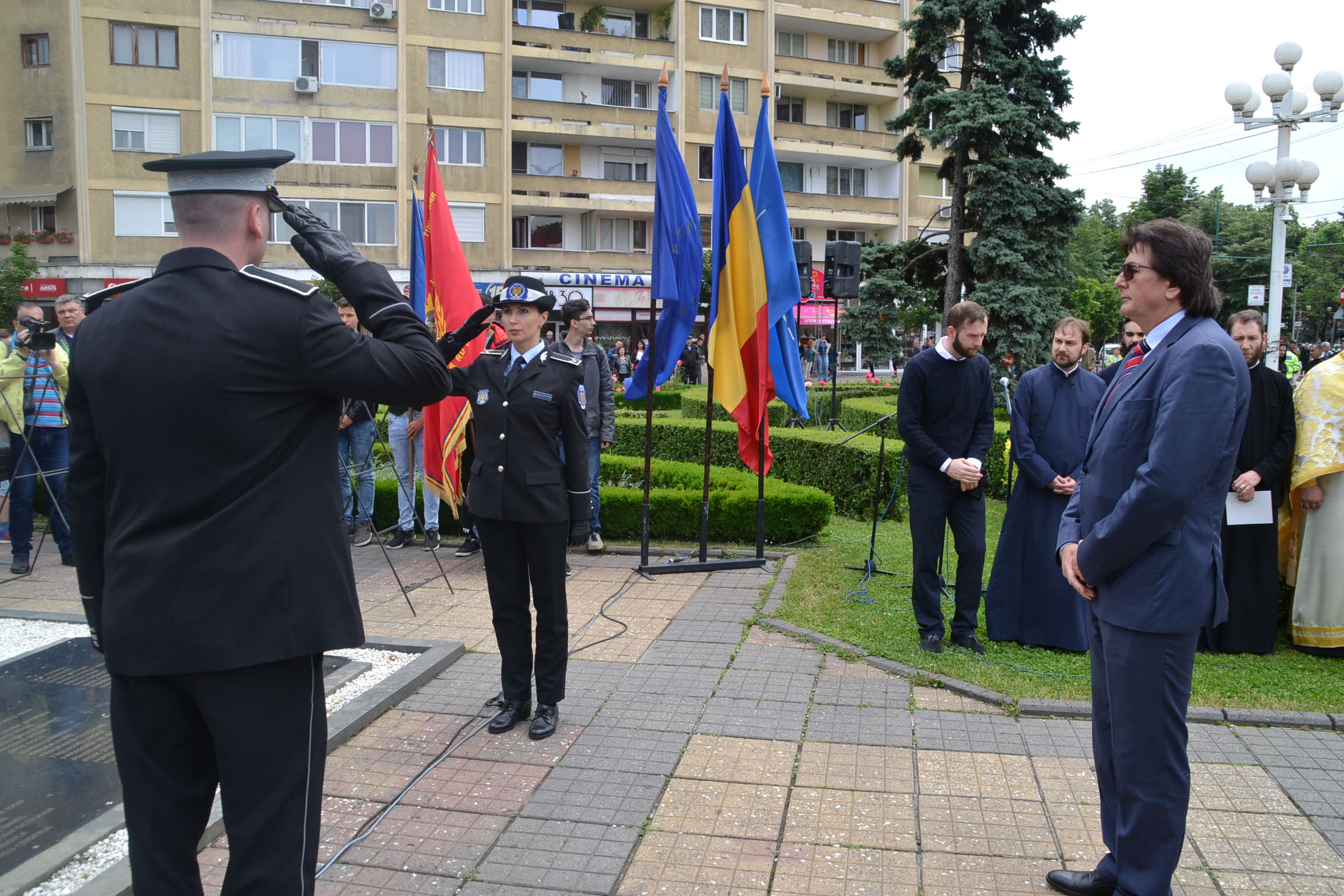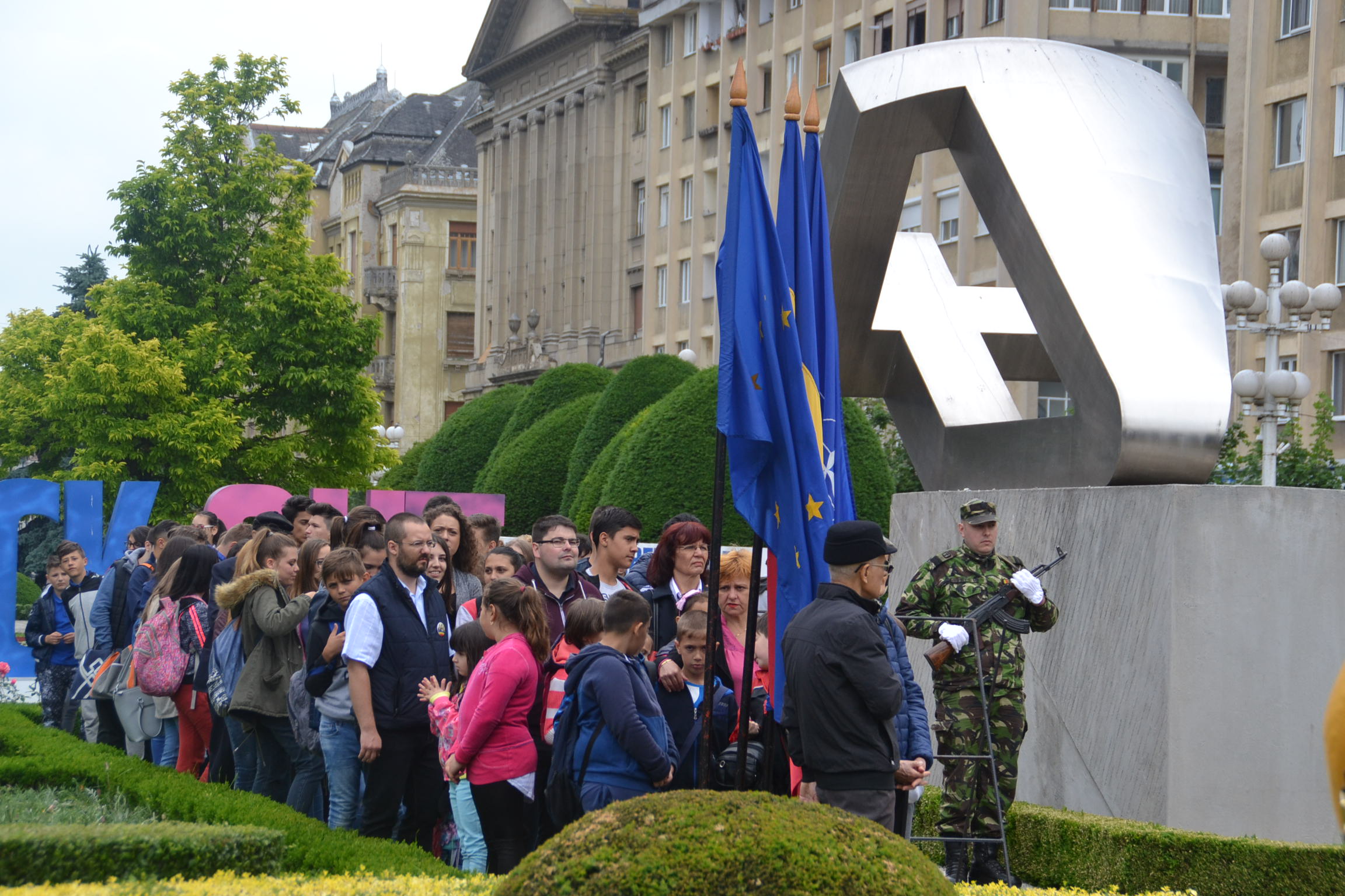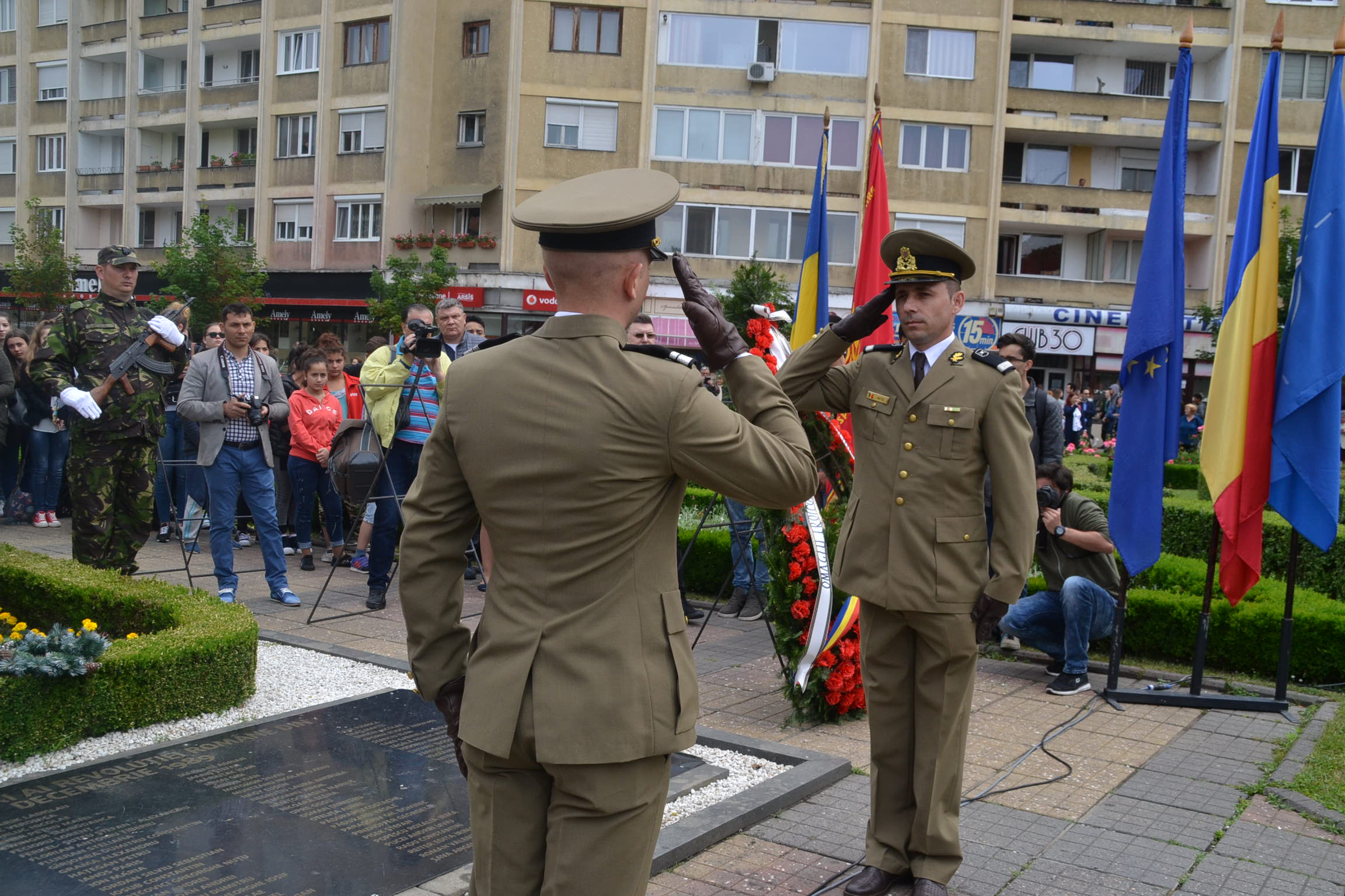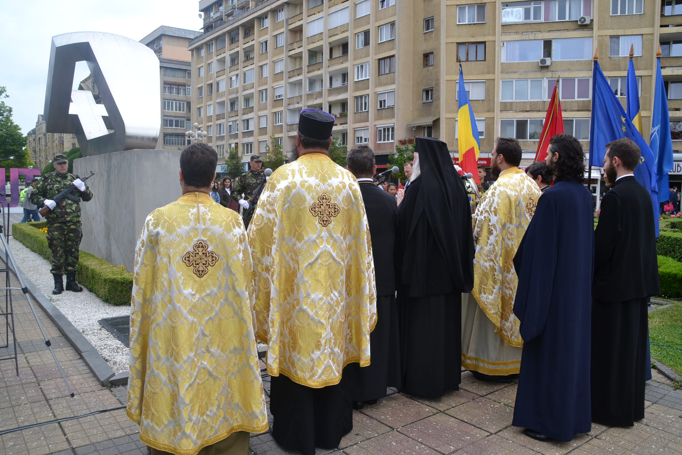 De la ora prânzului au început pregătirile de la monumentul Crucificării din Piața Operei. Aici și-au dat întâlnirea autoritățile locale și județene, reprezentanți ai corpului dipolomatic, parlamentari, veterani de război și ai altor operațiuni militare mai recente, elevi și mulți cetățeni ce au vrut să aducă un prinos de recunoștință celor ce au plecat dintre noi.
