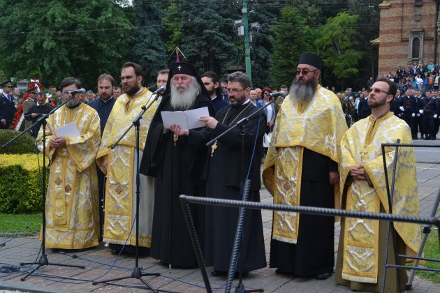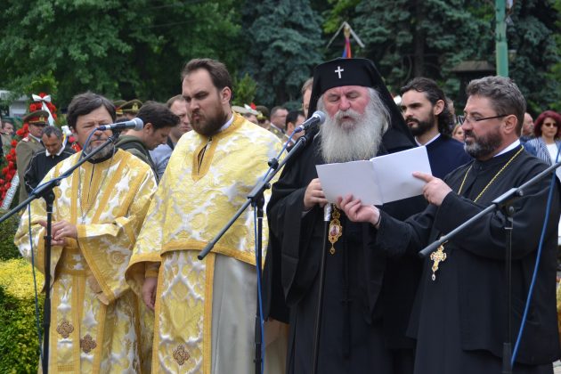 După intonarea imnului de stat al României a avut loc o slujbă de pomenirea a eroilor neamului oficiată de un sobor de preoți ce l-au însoțit pe IPS Ioan Selejan, Mitropolitul Banatului.