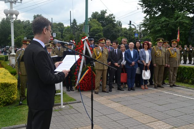 Prefectul județului, Mircea Băcală, a citi un mesaj de suflet trimis de prim ministrul Sorin Grindeanu în care erau pomeniți militarii ce sub o formă sau alta au luptat pentru țară. A fost pomenită contribuția Armatei Române și în perioada actuală în zone de conflict departe de țară în Irak, Afganistan sau în zona vestică a Balcanilor. Și ei sunt eroi și ei au dat jertfe chiar supreme.