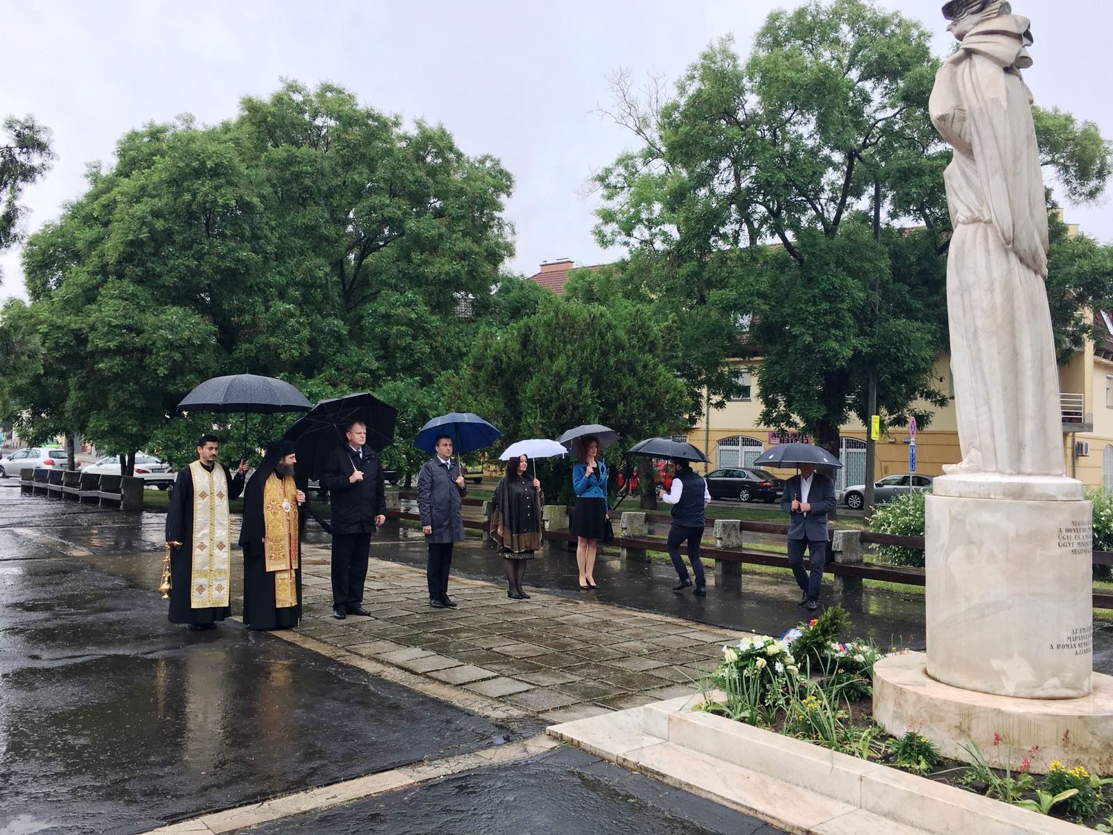 La aceste manifestări, serviciile religioase au fost celebrate de către Preasfințitul Părinte Siluan, Episcopul Eparhiei Ortodoxe Române din Ungaria, împreună cu pr. Ionuț Negrău (paroh la Săcal, Korosszakal). Au depus coroane de flori consulul general Florin Trandafir Vasiloni, din partea Consulatului General al României la Gyula; dl. Sekeres Antal, secretarul Primăriei Debrecen; prof. Cristina Marian și prof. Elena Moțoc Chivari, inspectori școlari în cadrul Inspectoratului Județean Școlar Bihor; Sőrés István, viceprimar și Harangi Sándor, reprezentanți ai Primăriei Hajdúböszörmény.