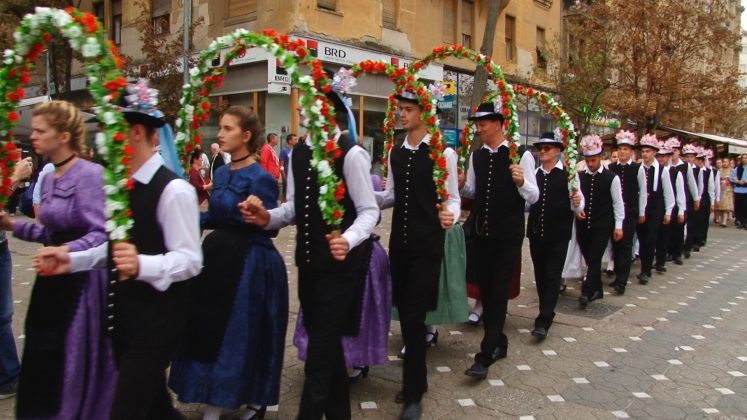 Fanfara „Banater Musikanten“, din Timişoara a deschis programul fiind urmați de formațiile de dansuri germane Billeder Heiderose, Warjascher Spatzen, Hatzfelder Pipatsche.