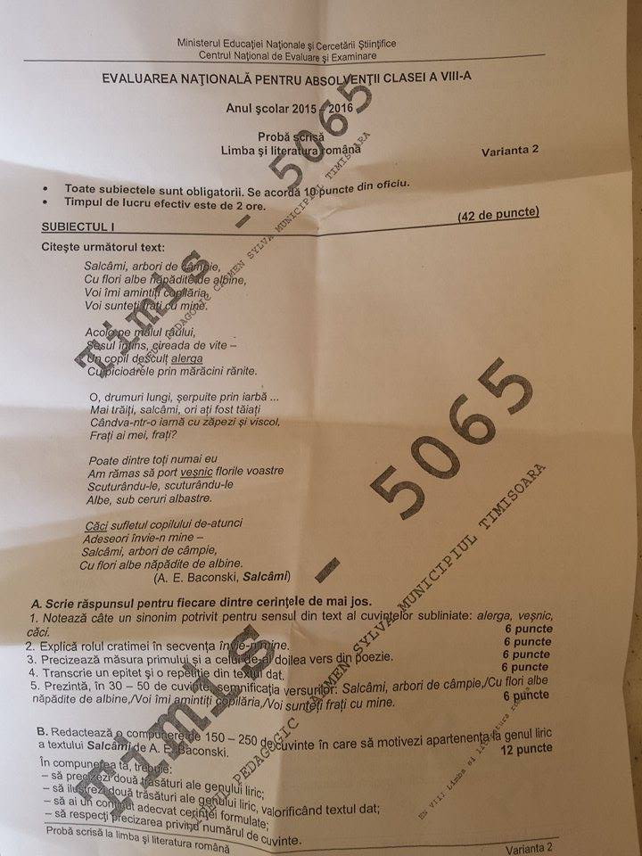 EVALUAREA NAȚIONALĂ 2016: proba scrisă la Limba Română, susținută, astăzi, de 4.500 de candidați din Timiș