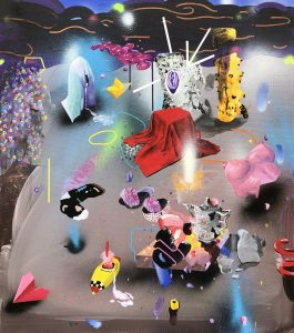 R.Ș.: Lucrările tale din ultimul timp par rezultatul unor jocuri, organizate sau nu, mai dinamice sau mai statice, cu elemente ciudate sau banale, cu culori curajoase ori extrem de curajoase. Ce-ar mai trebui văzut în ele?