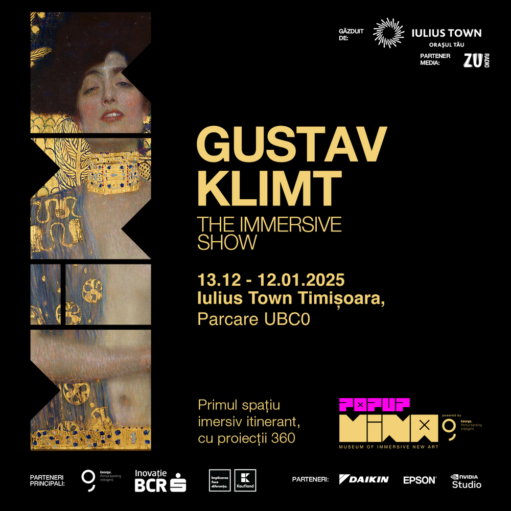 Publicul va putea admira şi universul fascinant al lui Gustav Klimt printr-un spectacol multimedia care prezintă opere iconice precum „Doamna cu evantai”, „Sărutul” și „Doamna în Aur”. Inspirat de stilul Art Nouveau și „Epoca de Aur”, show-ul este o celebrare a operei pictorului simbolist, creat de studioul Aural Eye și producătorul muzical Alexei Țurcan. Spectacolul va rămâne în program până la finalul ediției MINA Pop-Up din Iulius Town Timișoara.
