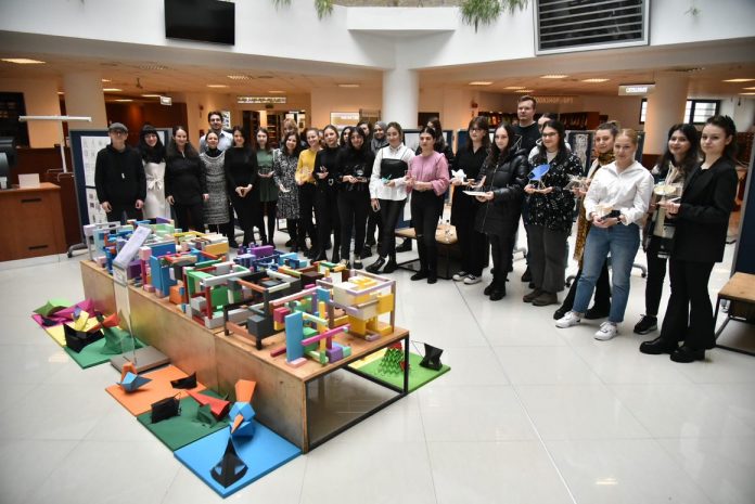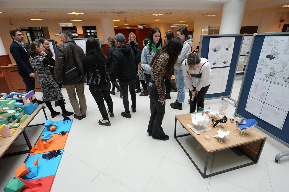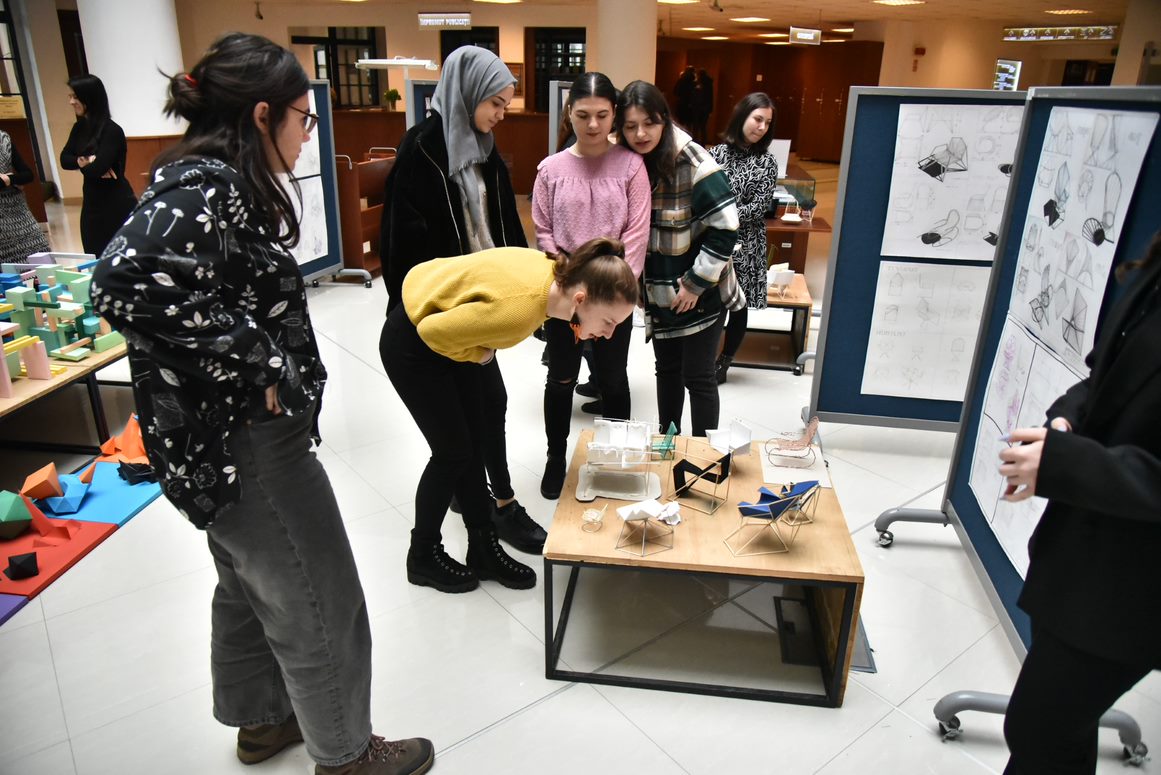 Holul Bibliotecii Universității Politehnica Timișoara a găzduit marți, 4 aprilie 2023, vernisajul expoziției StuFo MAI, ce reunește lucrările studenților de la specializarea „Mobilier și Amenajări Interioare”, anul II de studii, disciplina Studiul Formei, din cadrul Facultății de Arhitectură și Urbanism.
