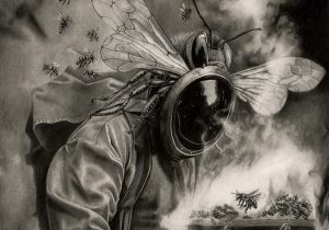 „Triburi Viitoare – ritualuri și fragmente dintr-un viitor reconstruit” prezintă o serie de desene de Florin Drăgoi care construiesc o mitologie speculativă a unei lumi modelate de colaps și regenerare. În acest viitor imaginat, umanitatea nu dispare, ci se reorganizează în triburi hibride, profund conectate cu natura, purtând în același timp urmele tehnologiei, memoriei și cunoașterii acumulate.