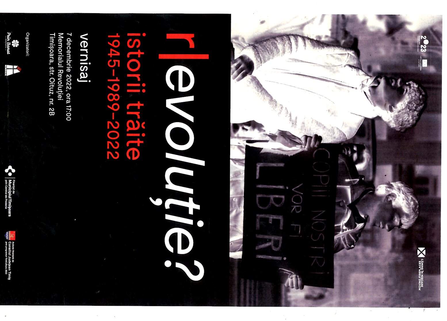 Timișorenii ce încă nu au uitat sunt invitați să participați alături de reprezentanți ai comunității locale, în data de 7 decembrie 2022, ora 17.00, la sediul Asociației Memorialul Revoluției din 16-22 Decembrie 1989 (str. Oituz nr.2B), la vernisajul expoziției – eveniment „rIevoluție? 1945-1989-2022 istorii trăite”.