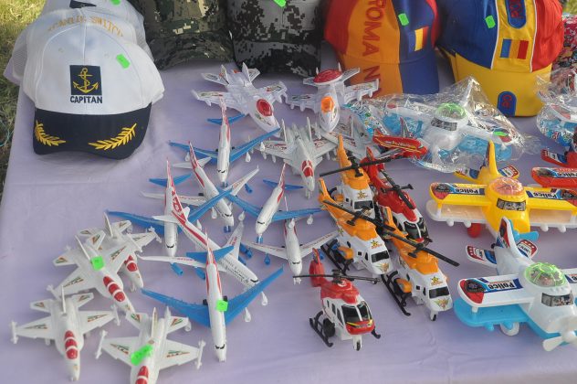 Două standuri cu jucării făceau cu ochiul micilor aviatori. O mulțime de avioane de plastic de la câțiva lei până la câțiva zeci de lei așteptau clienții. Nici măcar nu erau întrebați dacă au licență de zbor. Era o nimica toată să-și procure un mic avion gonflabil, care se poate folosi și în cada de baie pe post de vapor. Nici vata de zahăr nu a avut un succes așa de mare ca avionul amfibiu.