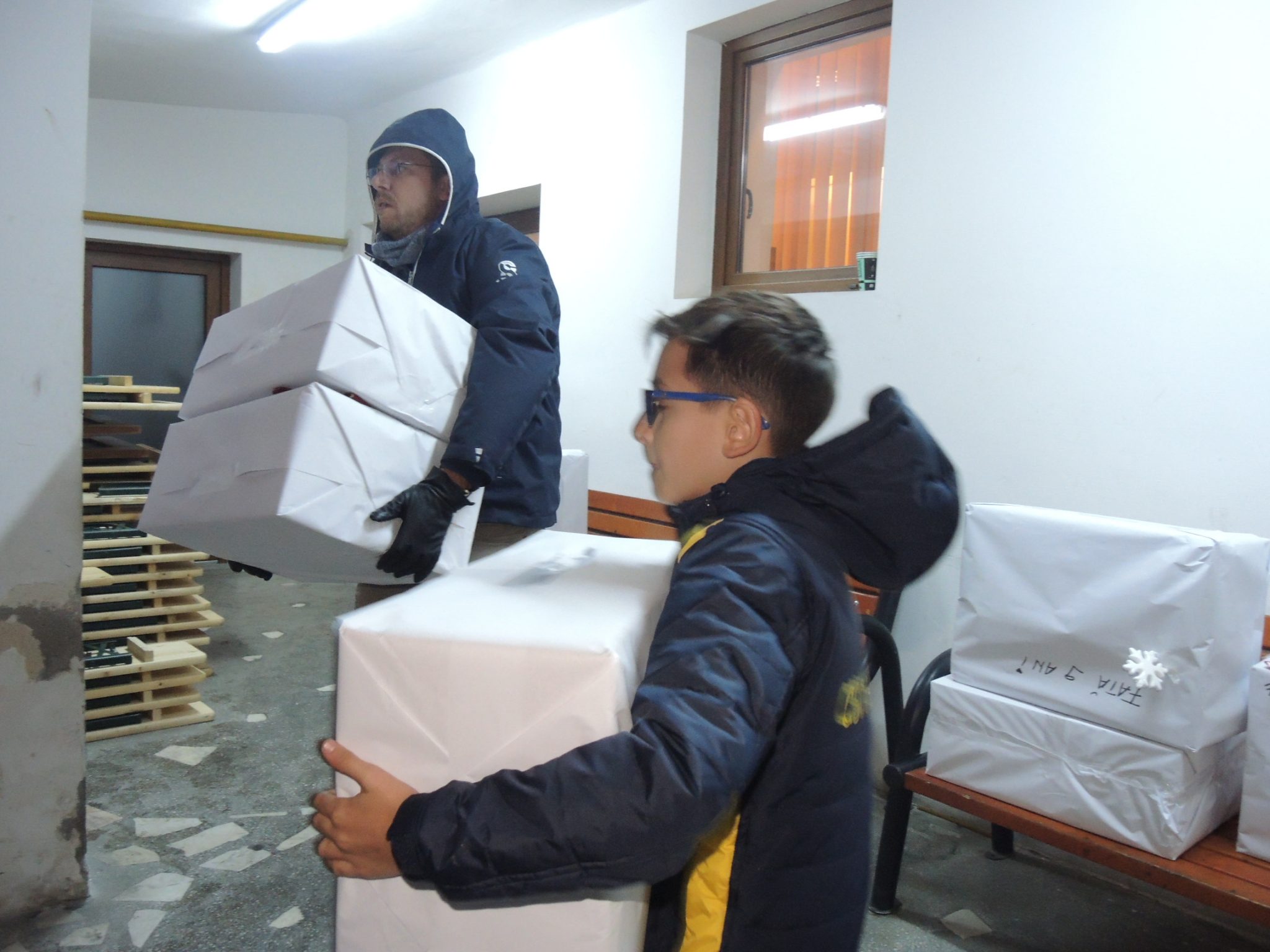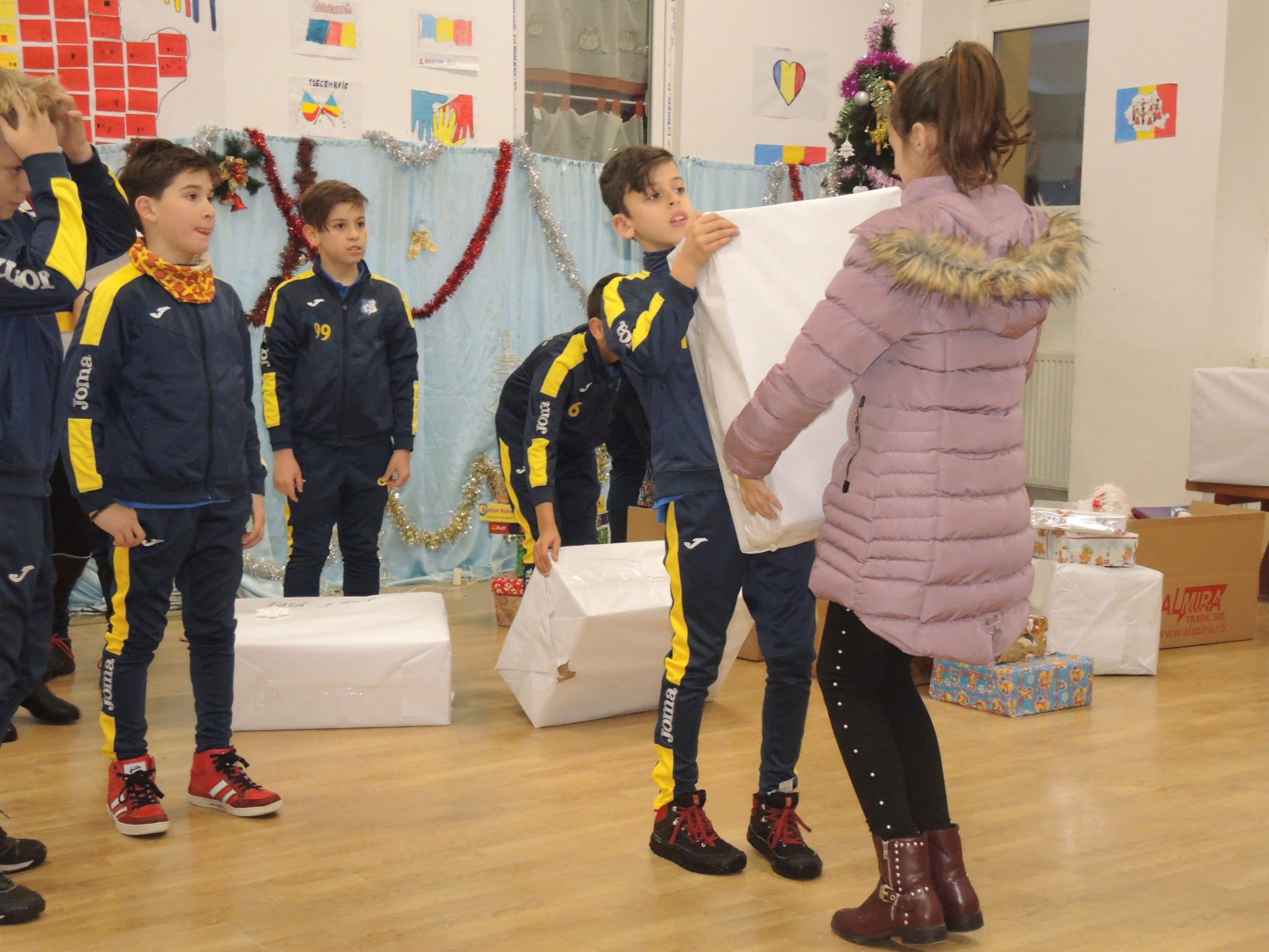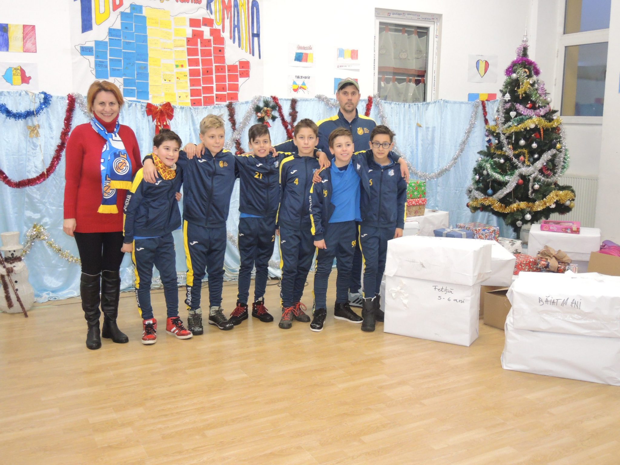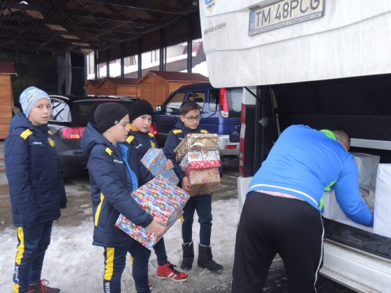 Echipa „Fantasticii 2008”, cum sunt alintați cei din grupa de vârstă de 10 ani, fiind născuți în anul 2008, au fost desemnați să împartă cadourile. A fost o responsabilitate dar și o onoare câştigate tocmai prin rezultatele bune pe care le-au avut anul acesta pe terenul de joc. Împreună cu antrenorul lor, dar și încă câțiva voluntari dintre părinți, cei șase fotbaliști au încărcat pachete destul de grele în microbuzul oferit de primărie și au plecat la drum.