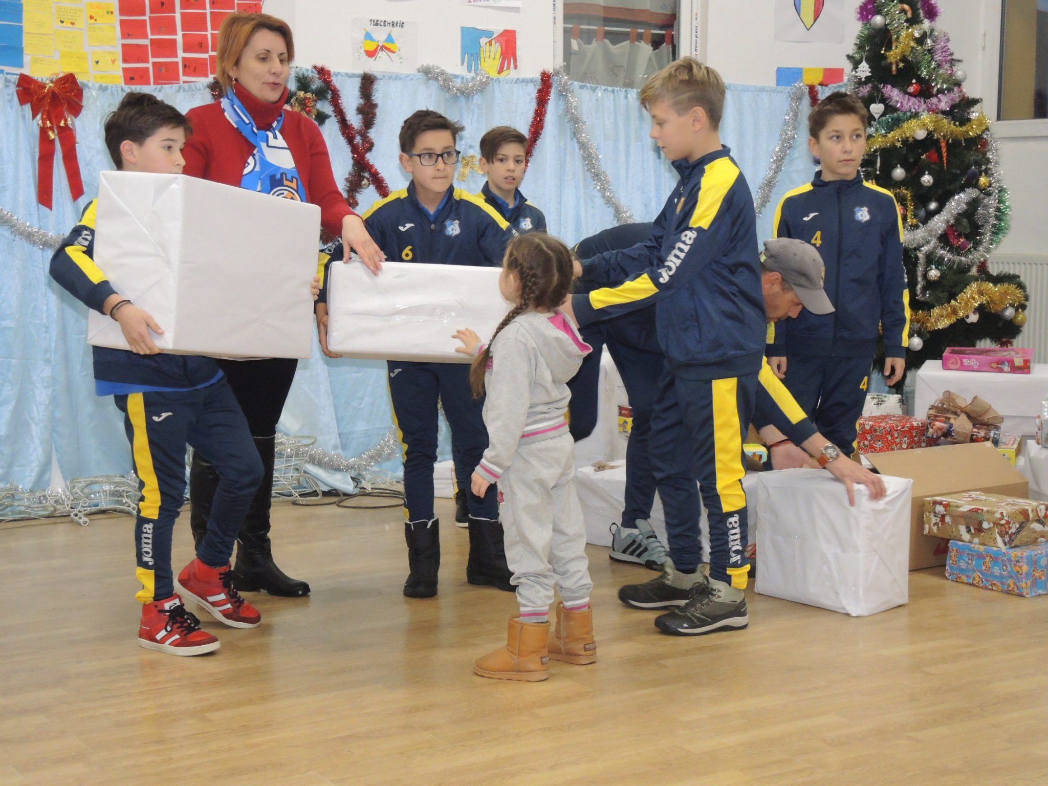 Acum, în perioada de dinaintea sărbătorilor, sportivii sunt angrenați și în altfel de activități. Cum spiritul Crăciunului este prezent peste tot, au hotărât să facă o colectă cu diverse obiecte de care se pot despărți, cum ar fi echipament sportive, haine ce le-au rămas cam mici, jucării, mingi, dulciuri și chiar alte alimente din gospodărie. Toate acestea au fost împărțite în circa o sută de pachete destul de consistente ce urmează să fie dăruite copiilor din familii cu nevoi.