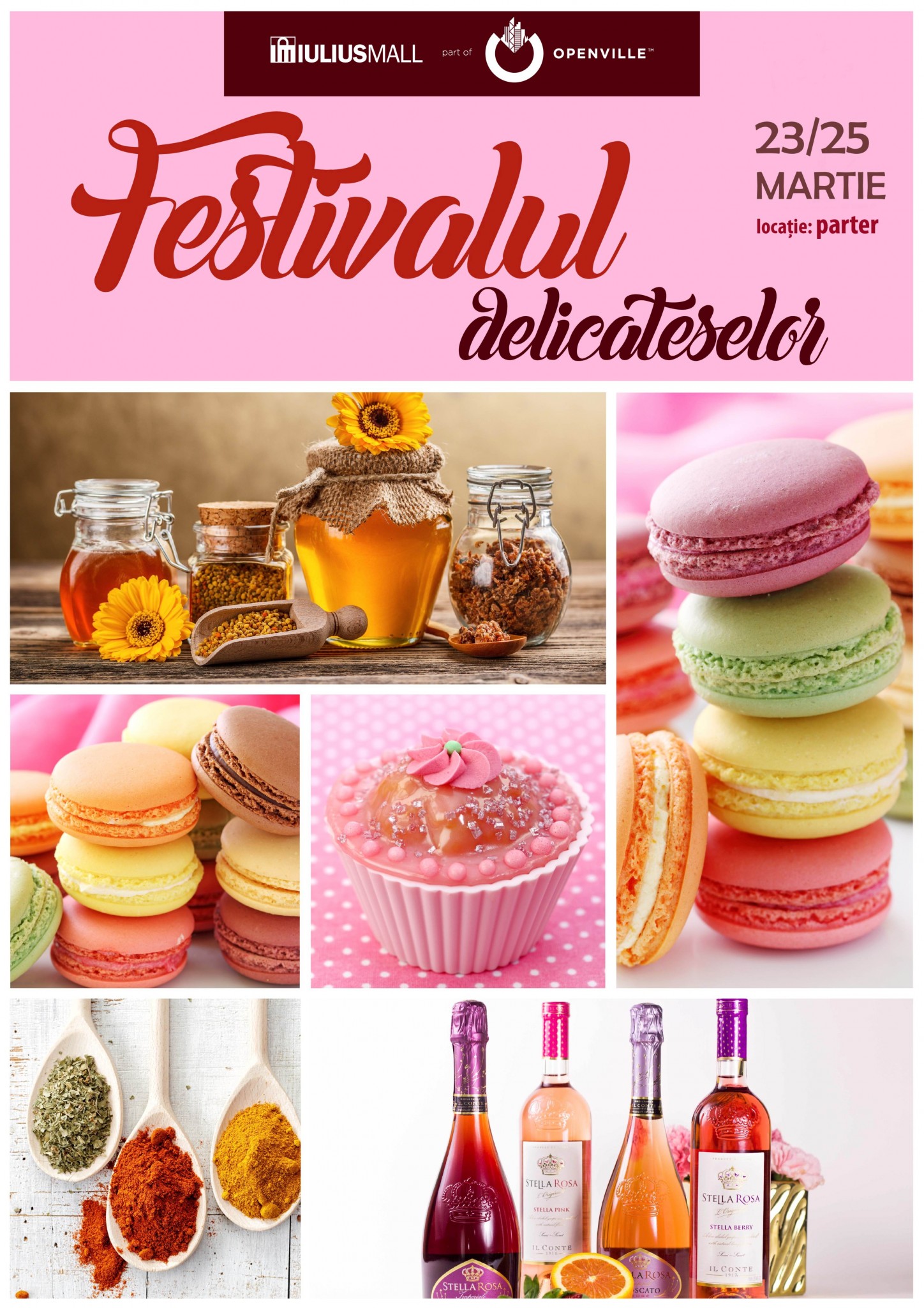 La Iulius Mall, weekend-ul acesta va fi deosebit de savuros şi asta pentru că, în perioada 23 – 25 martie 2018, va avea loc Festivalul Delicateselor. Produse apicole premium, prăjituri de casă, condimente, fructe confiate, siropuri, dulceţuri naturale, mezeluri, produse de cofetărie şi patiserie, vinuri fine şi alte bunătăţi îi vor ispiti pe clienţii mall-ului. Târgul va avea loc la parter, de vineri până duminică inclusiv.