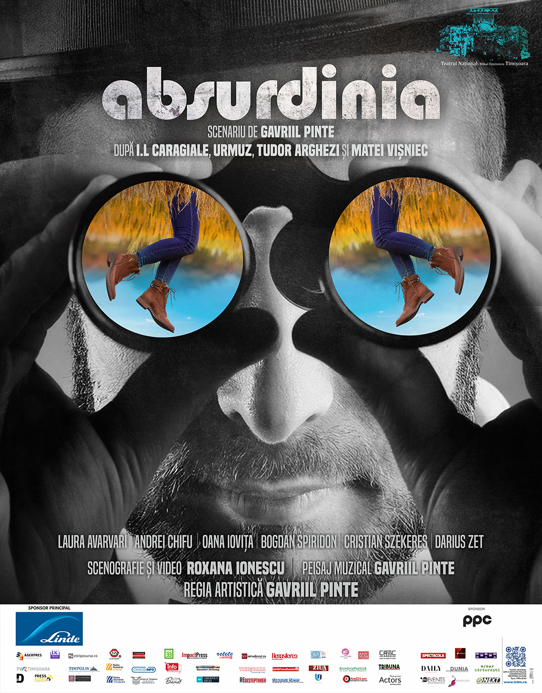 Cu umor și cu enorm de multă imaginație, Absurdinia își transformă spectatorii în exploratori care întorc spatele, pe deplin conștient, unei lumi guvernate cu intransigența nesiguranței de sine, descoperind că dincolo de lipsa de comunicare, de privarea limbajului de bogăția sensurilor multiple, de însingurare, mai există rost și sens, mai există râs, bucurie și speranță, pentru că, în cuvintele regizorului Gavriil Pinte, „lumea se vindecă, lumea rezistă, și rezistă fiindcă ea, lumea, e o alcătuire uluitoare”. Echipa de creație a spectacolului este completată de scenografa Roxana Ionescu și de talentații actori ai Teatrului Național din Timișoara – Laura Avarvari, Oana Iovița, Andrei Chifu, Bogdan Spiridon, Cristian Szekeres și Darius Zet.
