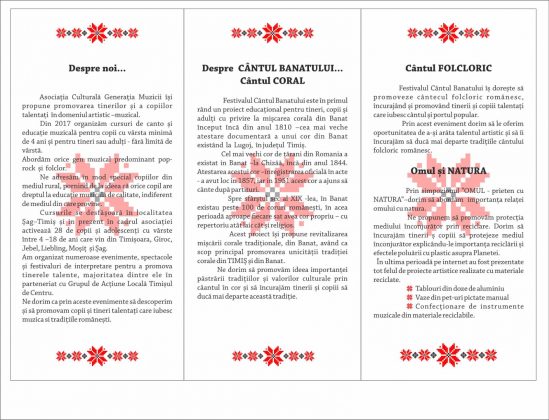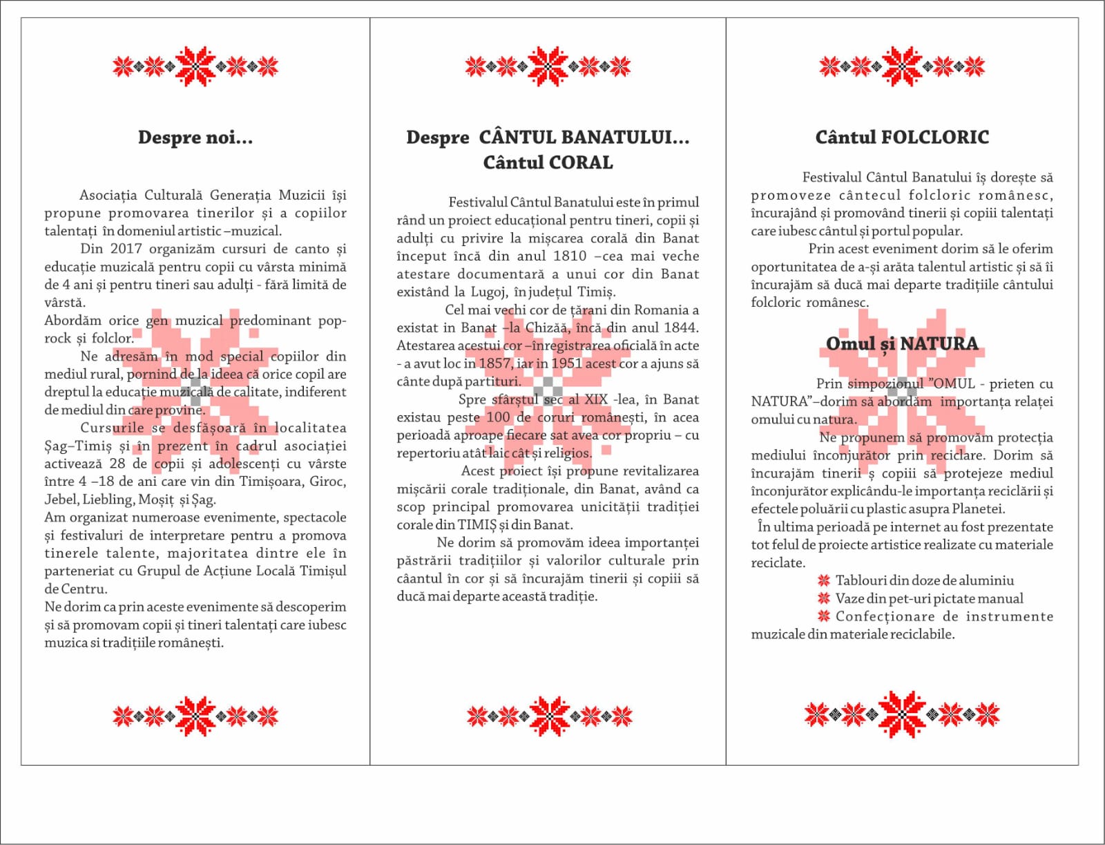 Asociația Culturală Generația Muzicii își propune promovarea tinerilor și a copiilor talentați în domeniul artistic-muzical și promovarea importanței păstrării tradițiilor și valorilor culturale prin cântul în cor și încurajarea copiilor și tinerilor să ducă mai departe această tradiție.