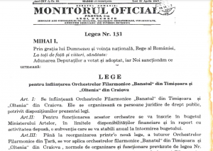 La 17 aprilie 1947 a apărut, prin Legea nr. 131, semnată de regele Mihai I, Filarmonica Banatul din Timișoara, prin asimilarea orchestrei simfonice Amicii Muzicii.
