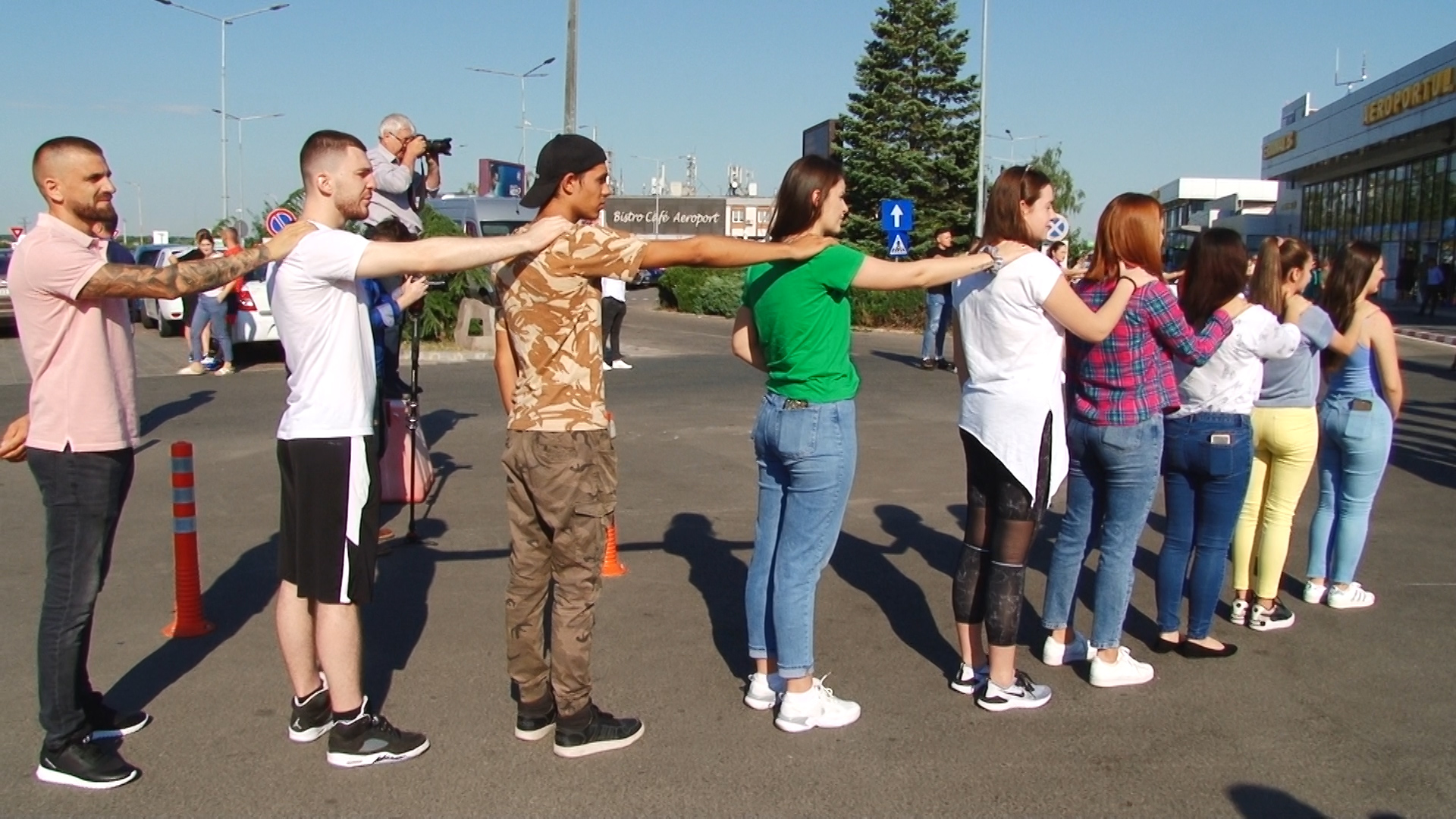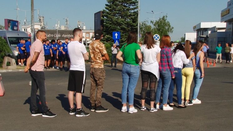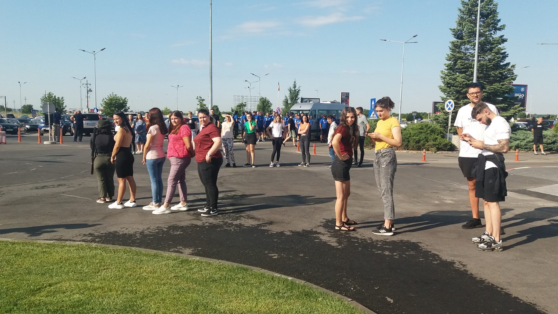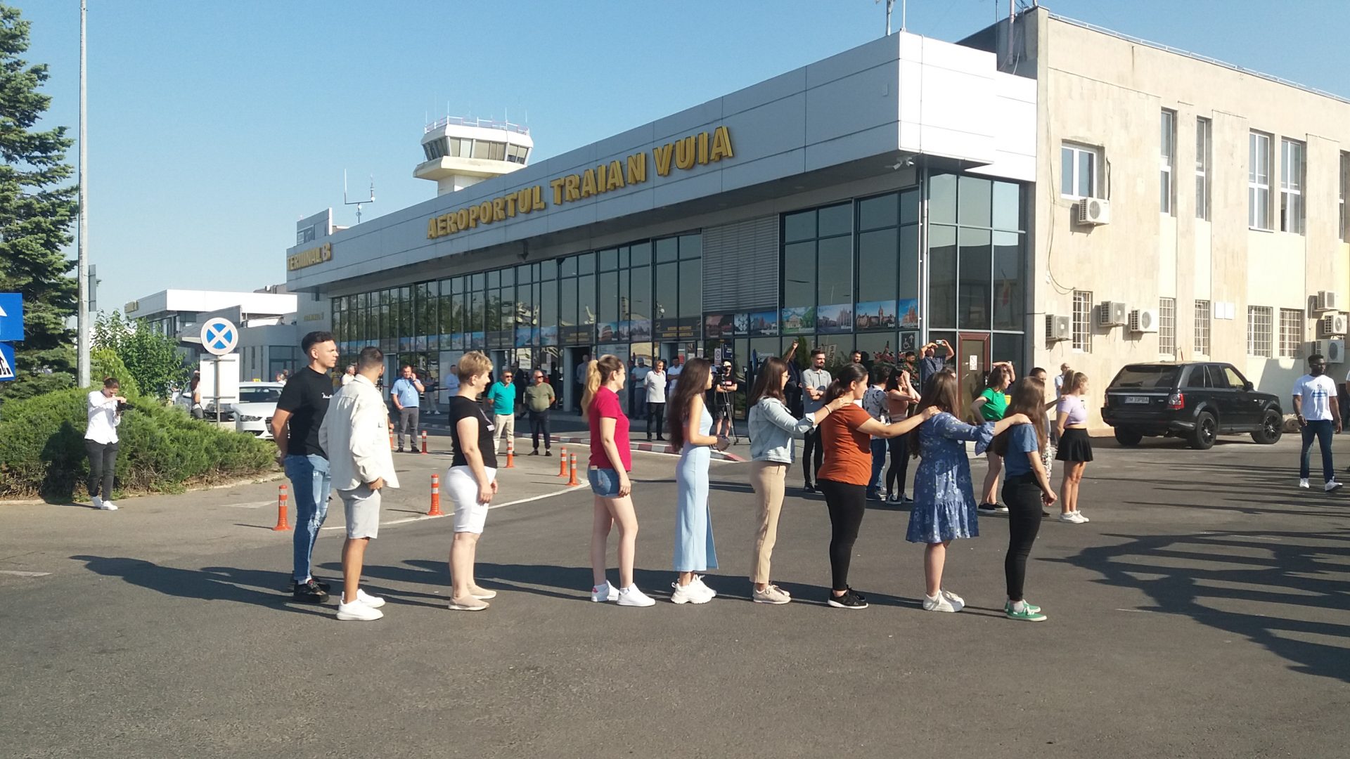 Dis de dimineață platoul din fața salonului oficial al Aeroportului Internațional „Traian Vuia” din Timișoara a cunoscut o forfotă mai puțin observată în alte zile obișnuite din cursul săptămânii. O mulțime de tineri în ținute destul de interesante repetau mișcări ca rupte dintr-un dans modern. Un profesor (pare-se de educația fizică) dădea indicații cifrate pentru a nu fi înțeles de călătorii ce căscau gura prin preajmă. Ca să fie secretul și mai complect au apărut pe asfalt și ciudate cercuri și linii ca în lanurile de grâu sau în filmele cu extratereștri. Pentru a fi tacâmul mai bine asezonat apare și titrata echipă de rugby a Timișoarei ce părea că are ceva legătură cu tineri studenți. Cea mai ciudată dintre toți era o domnișoara destul de micuță de statură ce căra în spinare o pușcă de vânătoare de parcă s-a deschis sezonul la păsări de baltă.