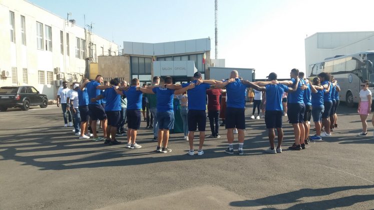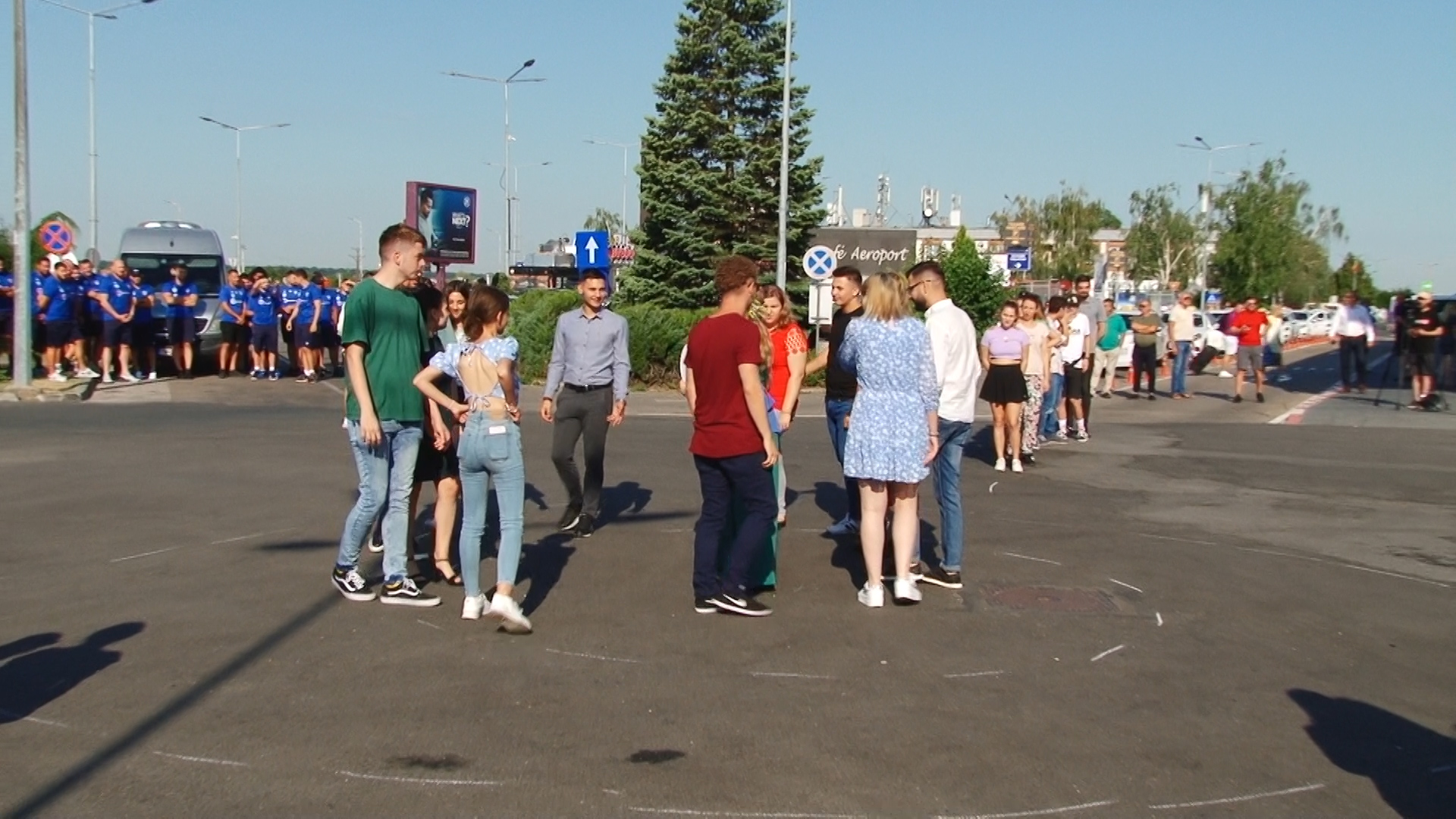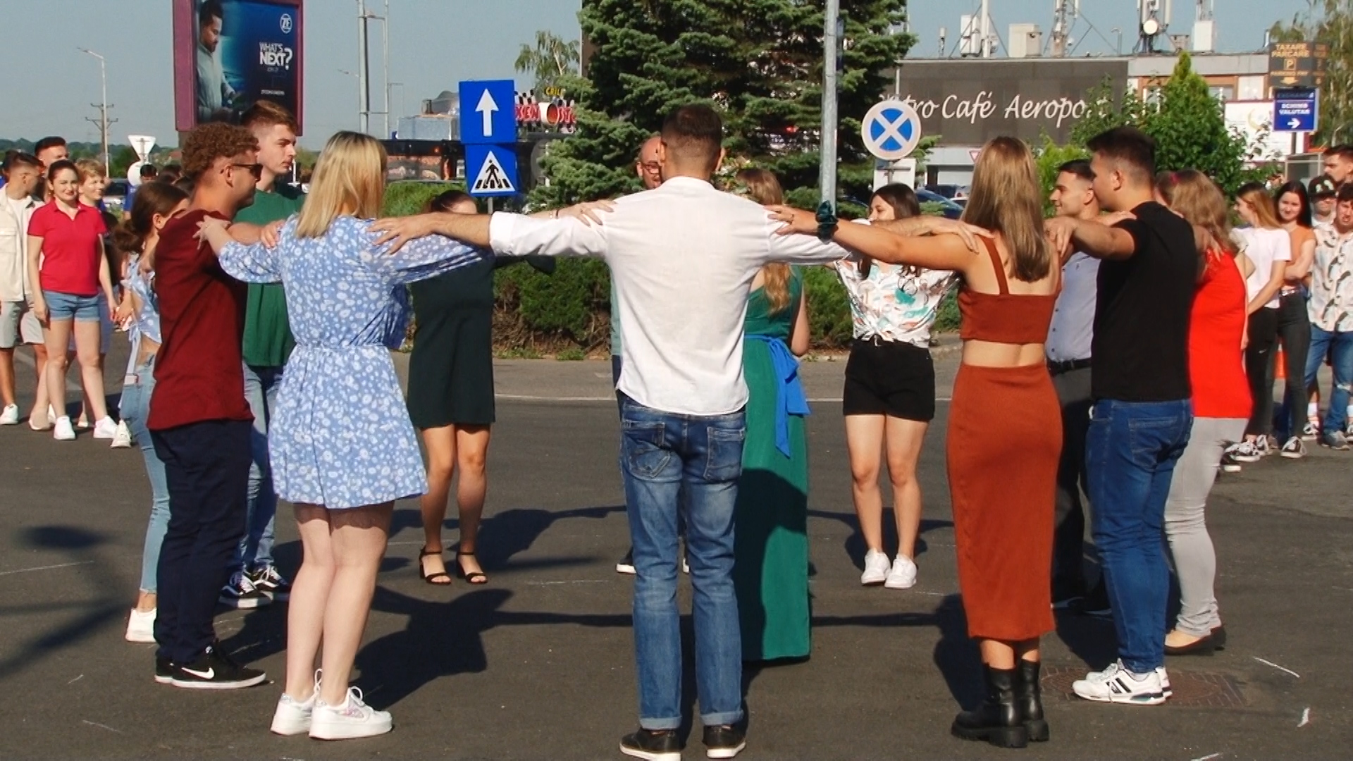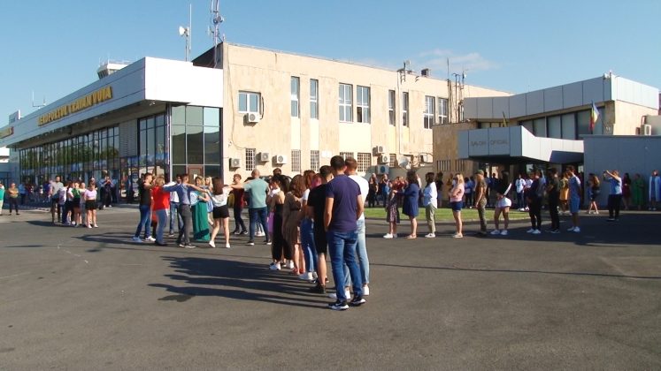 Dis de dimineață platoul din fața salonului oficial al Aeroportului Internațional „Traian Vuia” din Timișoara a cunoscut o forfotă mai puțin observată în alte zile obișnuite din cursul săptămânii. O mulțime de tineri în ținute destul de interesante repetau mișcări ca rupte dintr-un dans modern. Un profesor (pare-se de educația fizică) dădea indicații cifrate pentru a nu fi înțeles de călătorii ce căscau gura prin preajmă. Ca să fie secretul și mai complect au apărut pe asfalt și ciudate cercuri și linii ca în lanurile de grâu sau în filmele cu extratereștri. Pentru a fi tacâmul mai bine asezonat apare și titrata echipă de rugby a Timișoarei ce părea că are ceva legătură cu tineri studenți. Cea mai ciudată dintre toți era o domnișoara destul de micuță de statură ce căra în spinare o pușcă de vânătoare de parcă s-a deschis sezonul la păsări de baltă.