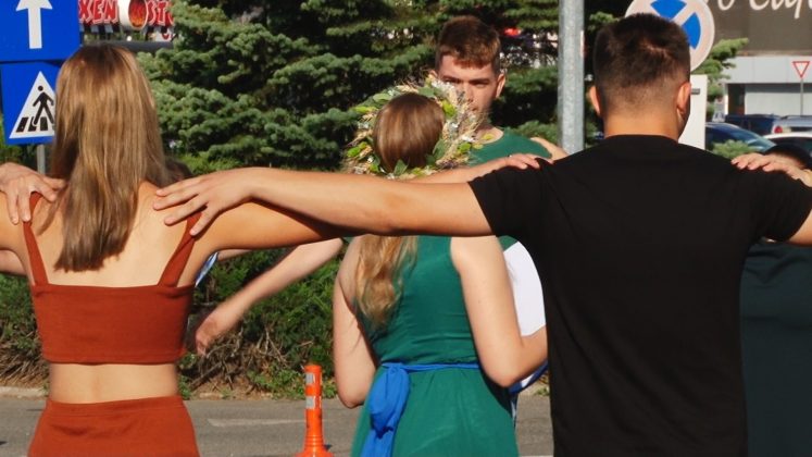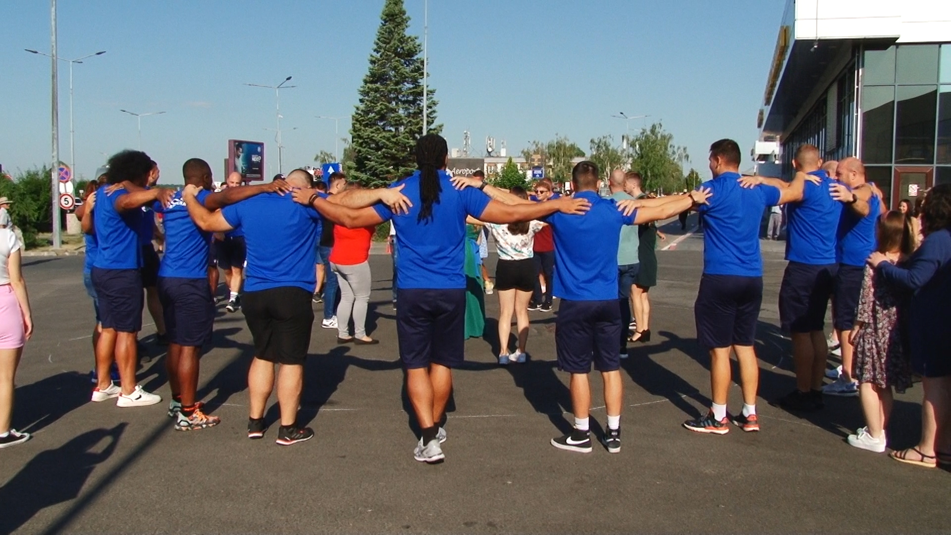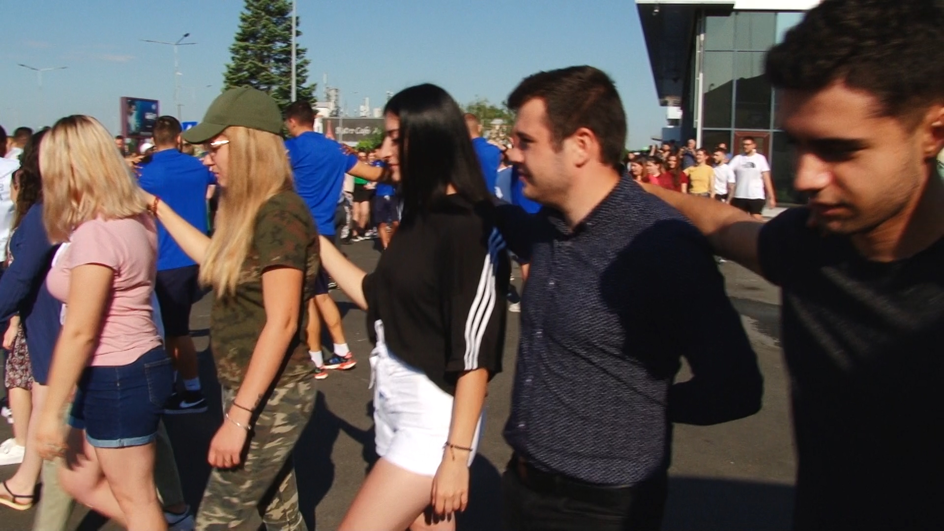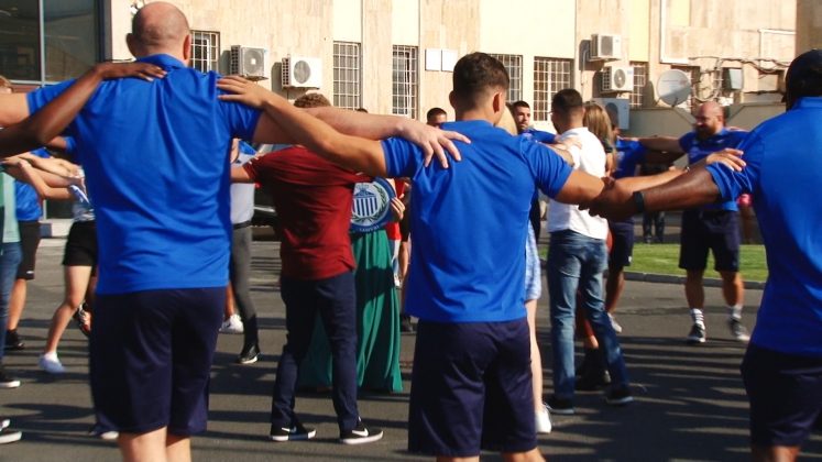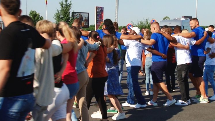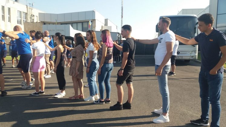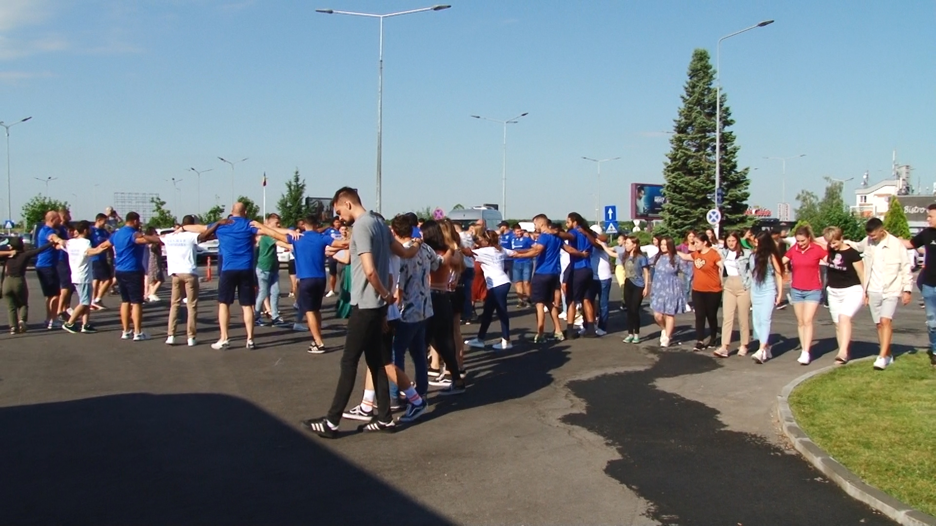 Misterul nu avea să dureze prea mult. La un moment dat a apărut profesorul Cosmin Popescu, rectorul USAMVB însoțit de o adevărată legendă a muzicii românești, Ovidiu Lipan Țăndărică în compania lui Dan Borzaș managerul echipei de rugby. Toți tinerii aveau să se prindă într-un cerc ce părea o incantație vizuală pentru armonie și sport. La cercul inițial ce creștea cu noi straturi concentrice aveau să se alături câteva grupuri ce formau razele unui imaginar soare. Pasagerii din apropiere, la început surprinși, au intrat în jocul studenților și filmau și fotografiau cu frenezie orice mișcare. Flash-mob-ul nu a durat decât câteva minute culminând cu ridicare în aer, ca la o repunere de la margine, la un meci cu balonul oval, a unei domnișoare cu o coroană de frunze ce aminteau de cununile de laur din antichitate.