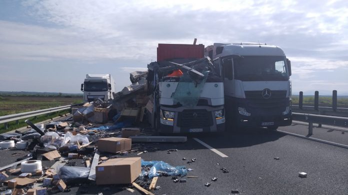 Traficul a fost blocat, miercuri dimineața, pe autostrada A1, la kilometrul 460 pe sensul de mers Lugoj – Timișoara. Asta după ce aici a avut loc un accident între două TIR-uri.