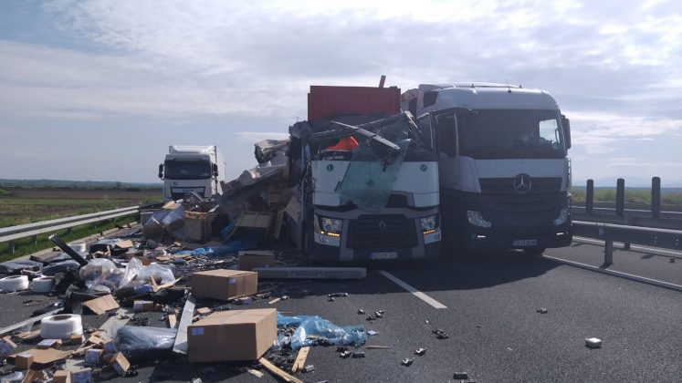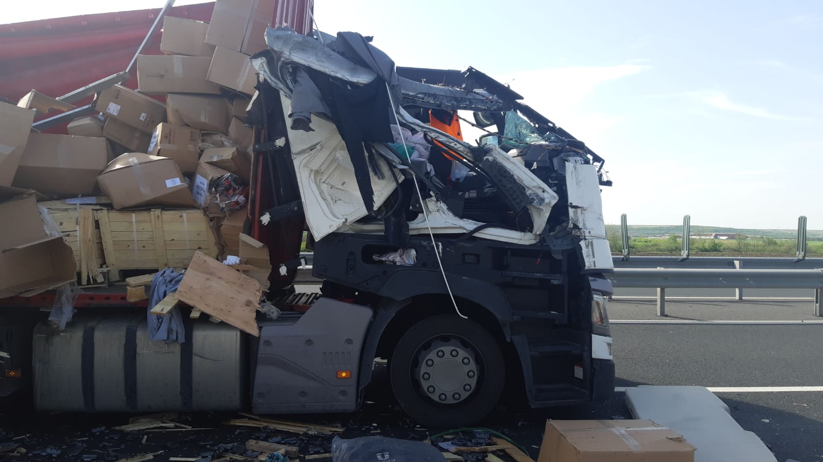 Potrivit pompierilor chemați la fața locului, ciocnirea dintre cele două camioane s-a produs la ora 10:23. Unul dintre TIR-uri era staționat pe banda de urgență, iar un altul, care circula pe banda 1, a intrat în el.