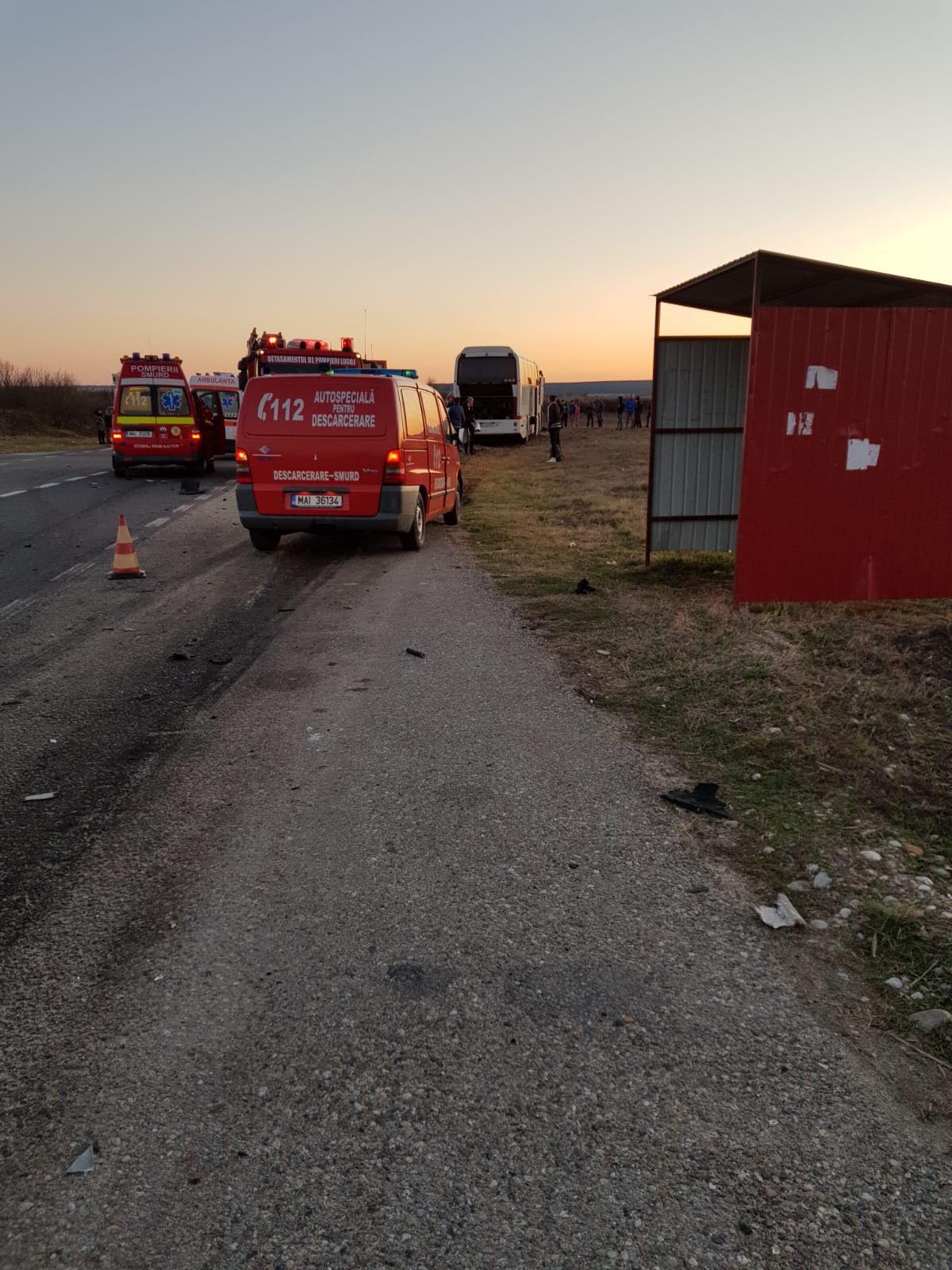 Update ora 18.40: Potrivit pompierilor ajunși la fața locului este vorba despre un mort și patru persoane rănite ușor. O a cincea victimă a suferit răni mai serioase în urma accidentului și a fost preluată de medici.
