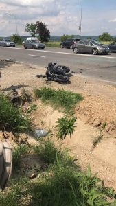 „Apelul prin 112 a fost la ora 15.20. Accidentul s-a produs pe DN 76, la intrarea în Sânmartin, fiind implicate un autoturism şi o motocicletă. Poliţiştii rutieri efectuează cercetarea la faţa locului pentru stabilirea împrejurărilor evenimentului rutier”, a precizat comisarul Alina Dinu, purtătorul de cuvânt al Poliţiei Bihor.