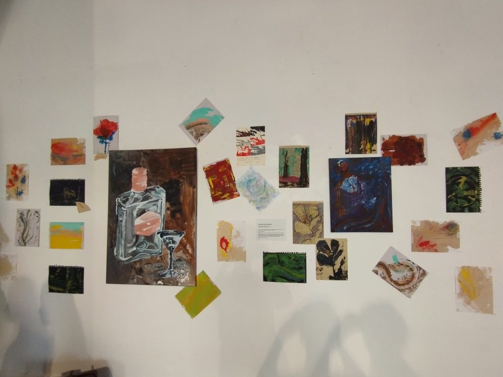 Este și cazul artistei debutante Iuliana Loredana Dobrițoiu, absolventă a facultății de Arte. Tânăra a participat în cadrul expoziției cu schițe în acrilic. O fire mai timidă și retrasă, tânăra povestește că, după terminarea facultății s-a confruntat cu un blocaj artistic major. „Acestea sunt primele lucrări după un an de când nu am atins nicio hârtie. Mi-am permis să fiu cât se poate de copilăroasă și chiar să iasă chicios. Am vrut ca, de această dată, să nu am teama de a greși pentru că toți artiștii care pictează au o frică legată de așteptările oamenilor de la ei ca artiști. Se așteaptă ca lucrările să fie sofisticate, perfecte, iar dacă nu sunt, ei devin criticați”, crede Iuliana Dobrițoiu.