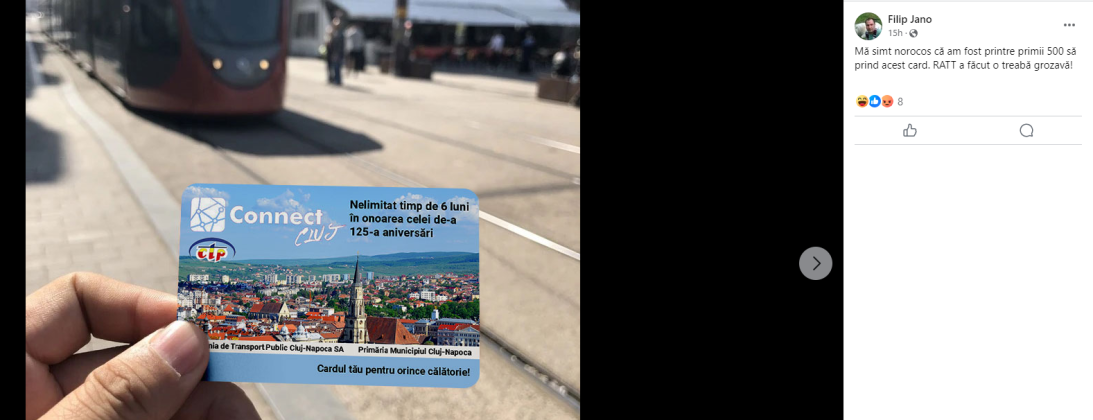 Apărută miercuri seară, 14 august, metoda a fost întâlnită și în Cluj Napoca. Atât strategia falsei promoții, cât și conturile false sunt identice. Postarea a devenit virală în rândul internauților clujeni. Informații cu privire la caracterul înșelător al postării au apărut chiar și în presa locală, iar Compania de Transport Public din Cluj Napoca a reacționat, informând călătorii despre caracterul înșelător al anunțului.