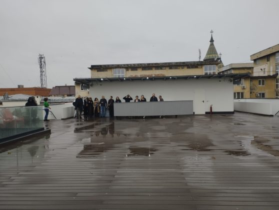 Clădirea de la Cinema Studio are și o zonă de relaxare, cu măsuțe și scaune, canapele dar și balcon, pentru iubitorii de film.