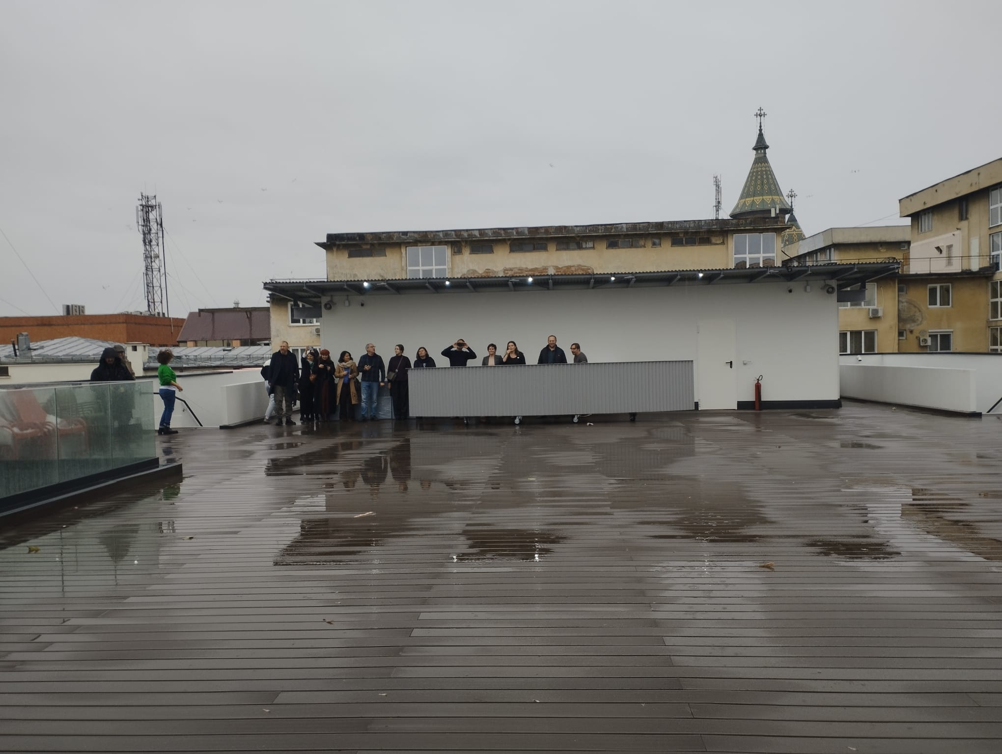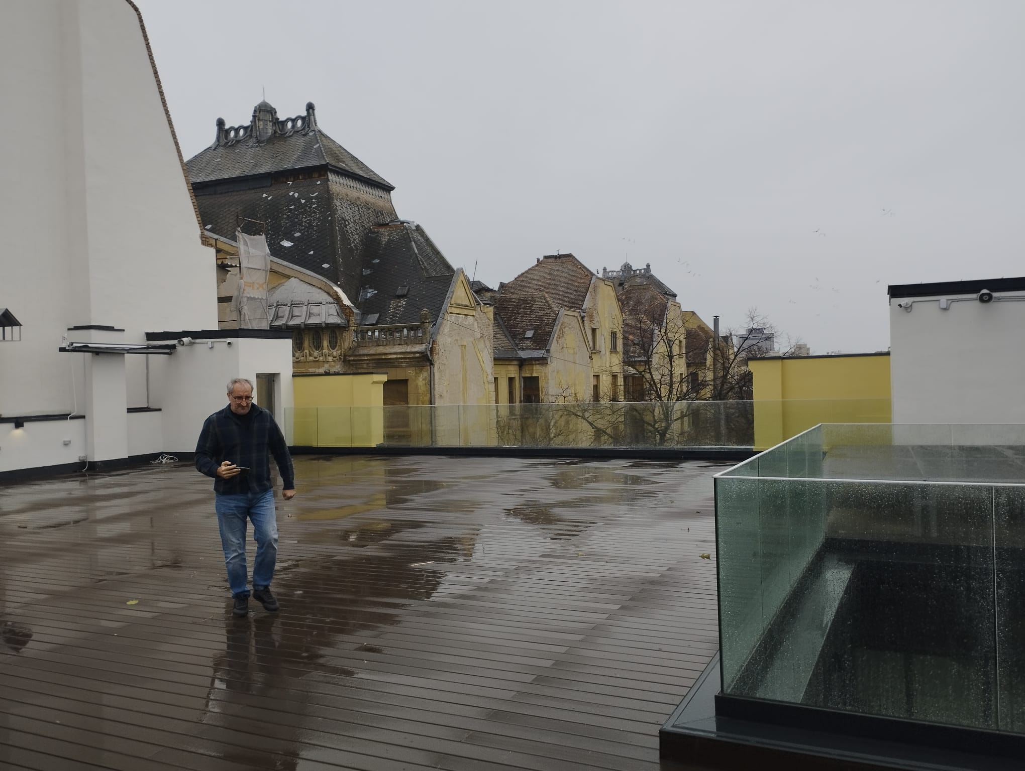 De asemenea, există și o terasă pe acoperiș, care ar putea fi echipată asemănător unei cafenele și are o capacitate de până la 80 de locuri. Acolo se vor desfășura proiecții în aer liber pe timp de vară, terasa fiid dotată cu un ecran retractabil. De pe terasă se vede Castelul Huniade.