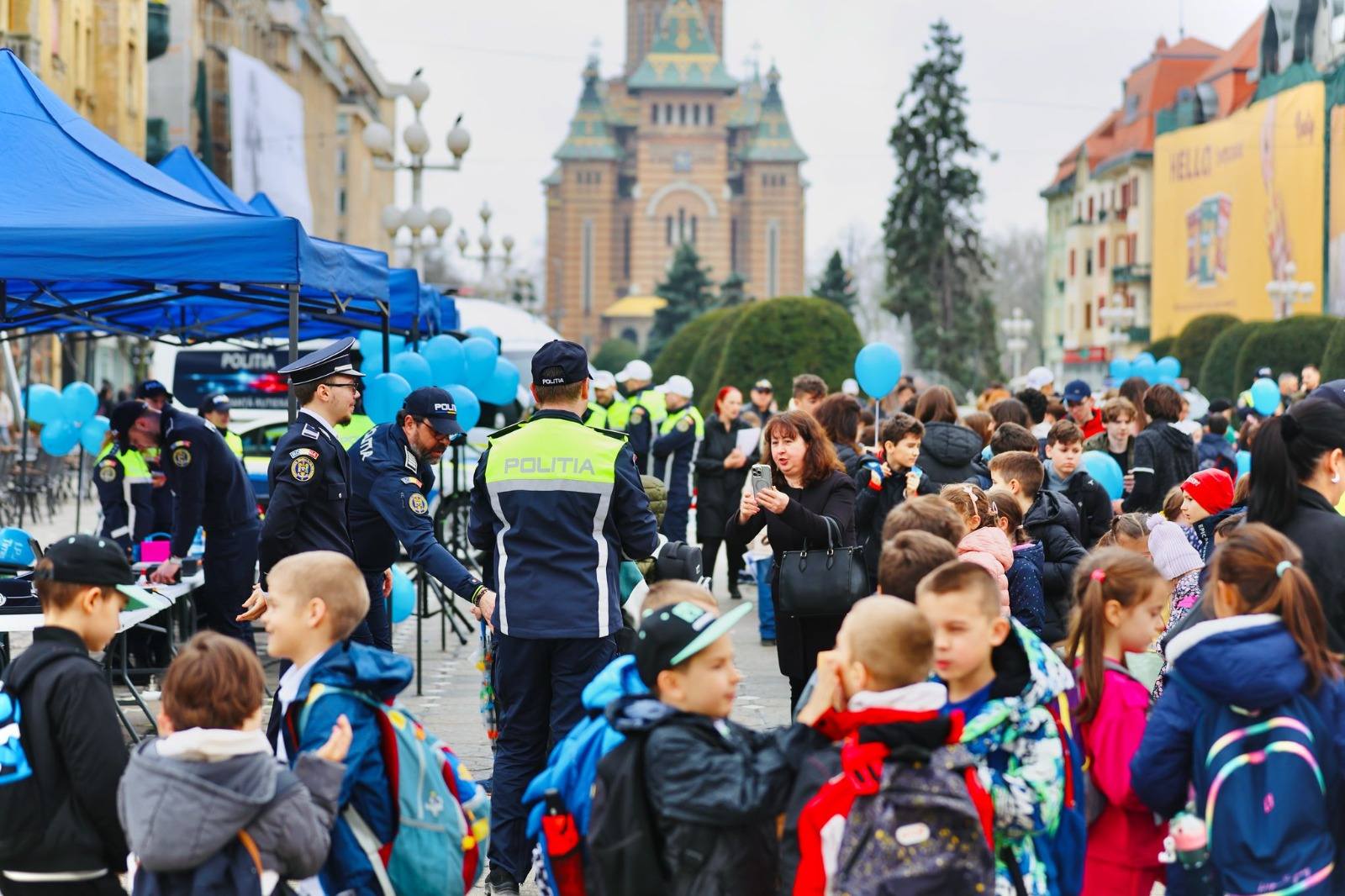 Ziua Porților Deschise a adunat sute de copii, părinți și profesori pe platoul din fața Operei din Timișoara. Micuții au fost intereseați să descopere secretele din spatele meseriei de polițist.