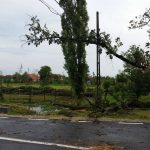– Degajarea a trei copaci căzuți pe șosea, respectiv pe cablurile de alimentare cu energie electrică;