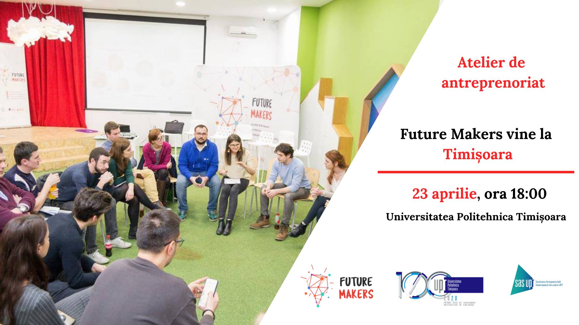Marți, 23 aprilie 2019, în intervalul 18:00 – 21:00, la Sala Polivalentă de la Biblioteca Universității Politehnica Timișoara), va avea loc Atelierul de Antreprenoriat Future Makers. Evenimentul este organizat împreună cu Societatea Antreprenorială Studențească din UPT și Universitatea Politehnica Timișoara. Participarea este gratuită.
