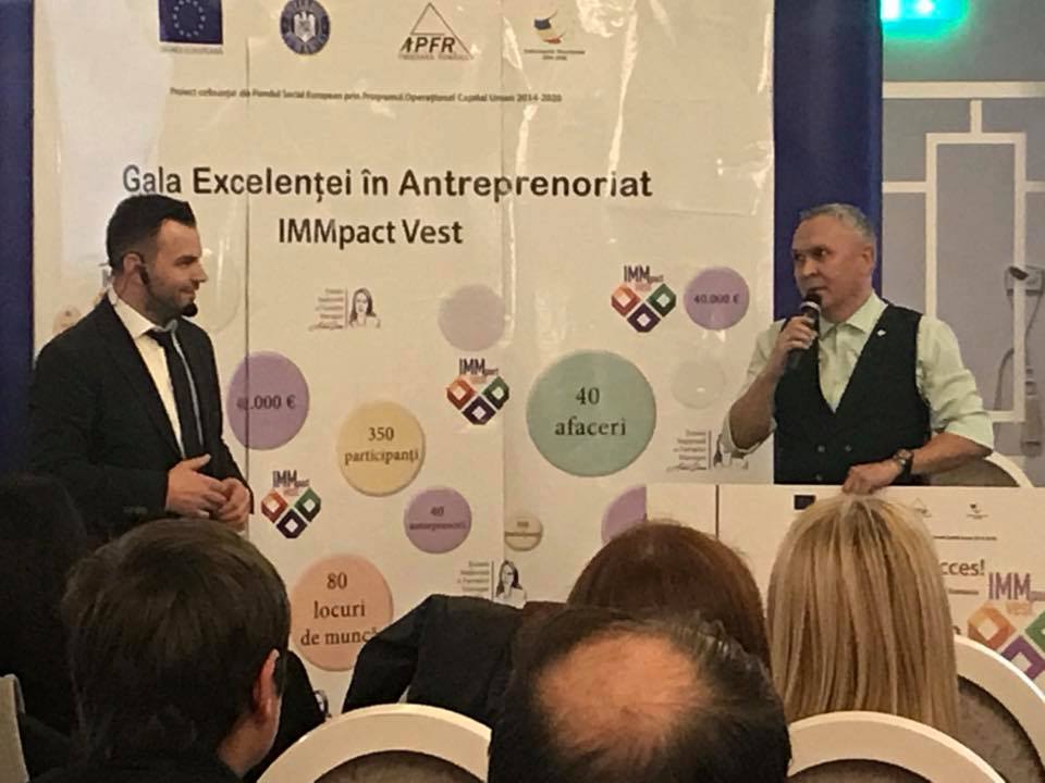 “Este vorba de Gala Excelenţei în Antreprenoriat IMMpact Vest, unde vor fi premiaţi cu câte 40.000 euro pentru ideea lor de afaceri, 40 de câştigători ai acestei ediţii, din cei 87 de antreprenori care au aplicat proiecte. Bani sunt nerambusabili şi provin dintr-un proiect al Programului Operaţional de Competitivitate Umană”, a spus directorul executiv, Vasile Moldovan.