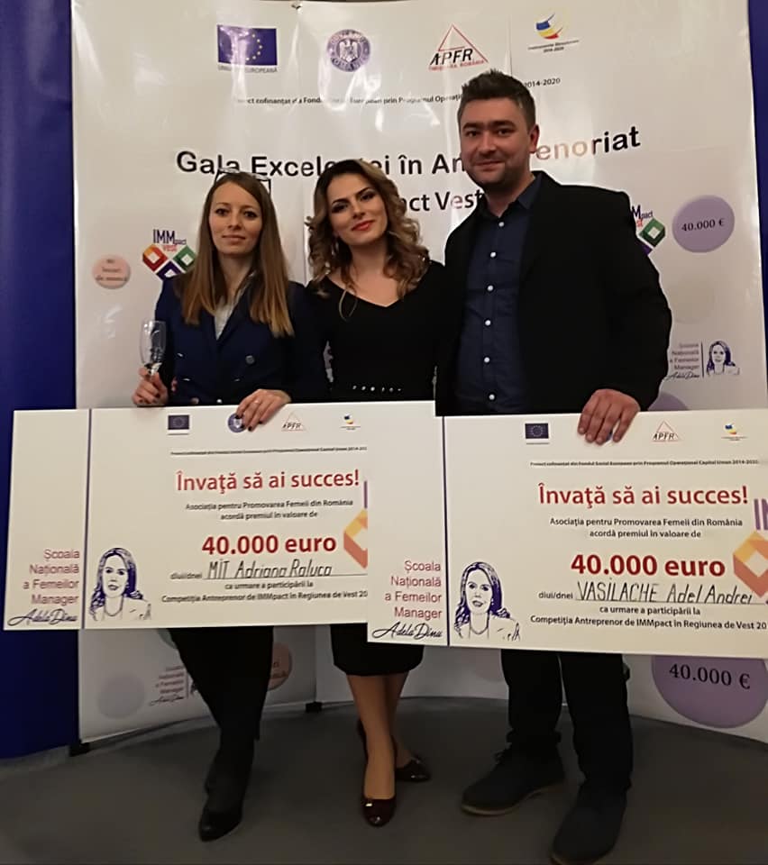 concursul proiectului Centrul de excelență în promovarea antreprenoriatului IMMpact Vest, proiect cofinanțat din Fondul Social European prin Programul Operațional Capital Uman 2014-2020. Au participat la proiect peste 80 de antreprenori şi au plecat cu un CEC de 40 000 euro, patruzeci dintre aceştia.