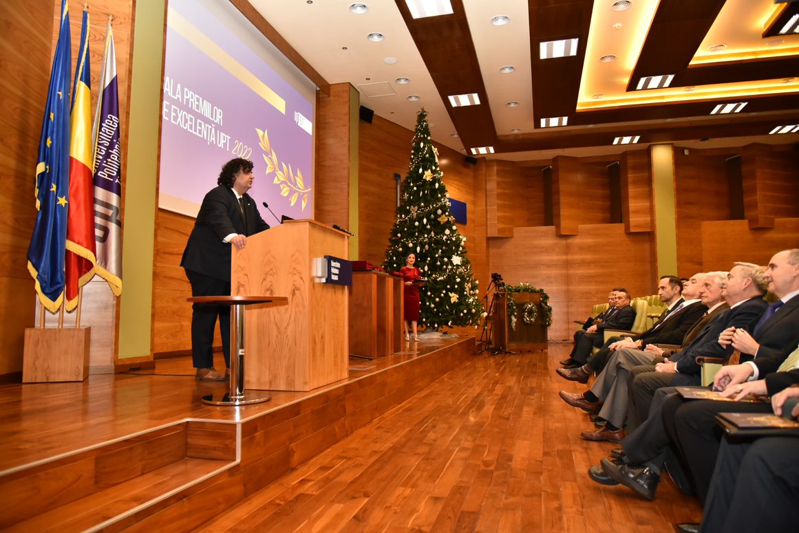 În deschiderea evenimentului, desfășurat joi, 15 decembrie 2022, în Auditorium-ul Centrului de Conferințe al UPT, conf.univ.dr.ing. Florin Drăgan, rectorul Universității Politehnica Timișoara, a declarat că „pentru o instituție care de 102 ani a contribuit la dezvoltarea modernă a orașului și a regiunii, dintre care 25 de ani de una singură, care a pus bazele celorlalte universități din Timișoara, a filialei locale a Academiei Române, o instituție care și în prezent se situează pe primul loc în țară între universitățile tehnice în mai multe ranking-uri internaționale, o instituție din care, tot recent, două colective au fost premiate de Academia Română, iar alte două au obținut premii în domeniul PR-ului, suntem îndreptățiți să avem o Gală a Excelenței. Sunt multe premii, dar acesta e, cu atât mai mult, un motiv de bucurie și de mândrie pentru noi toți”.