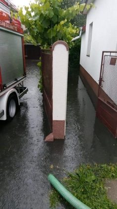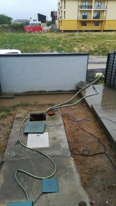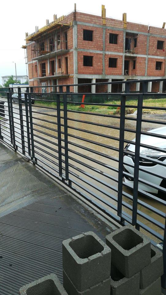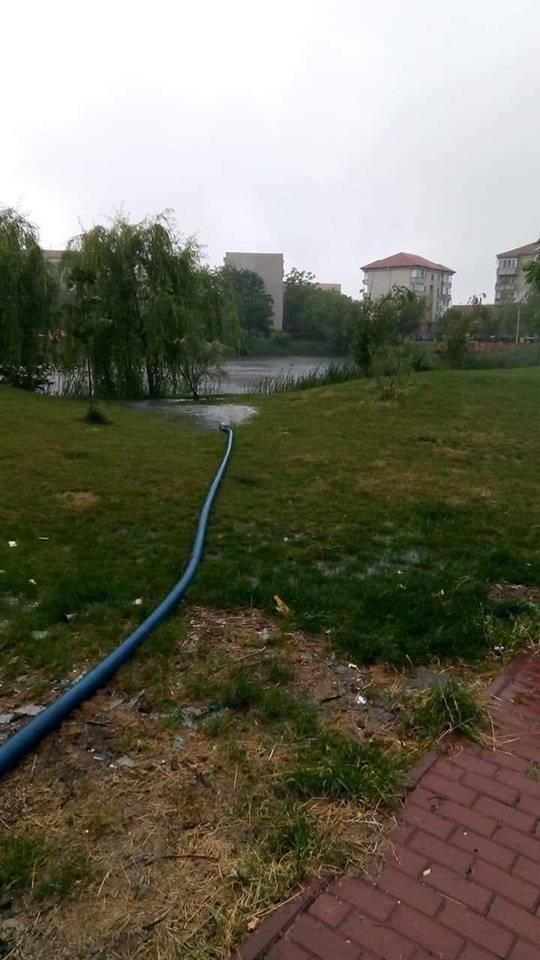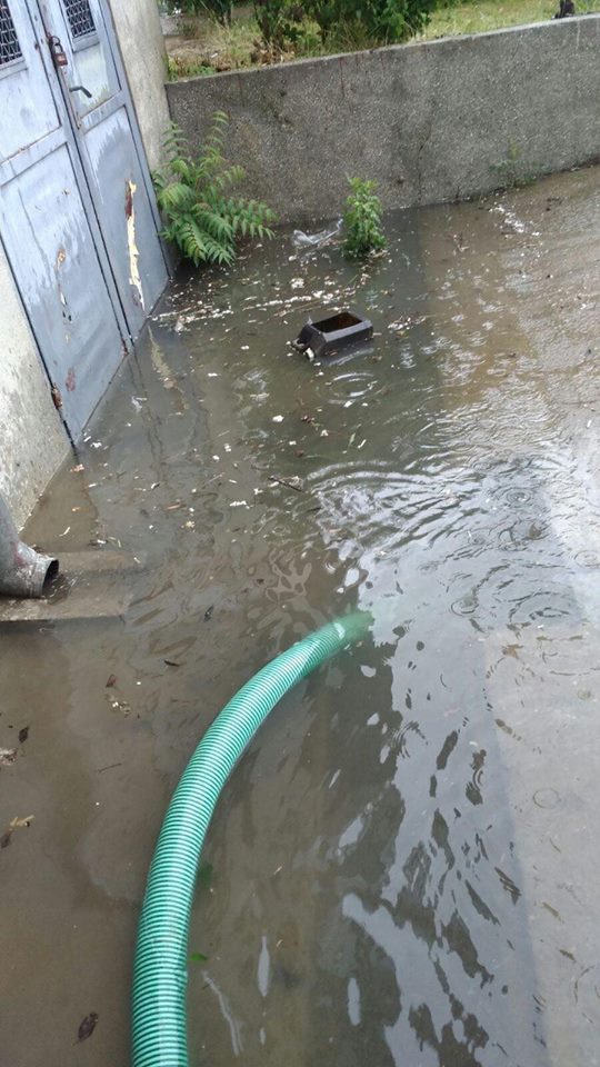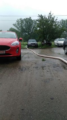 Apa a pătruns într-o curte din Timișoara, de pe strada Dimineții. Și în Buziaș, dar și în Giroc au fost inundate mai multe curți, pompierii fiind chemați în ajutor.