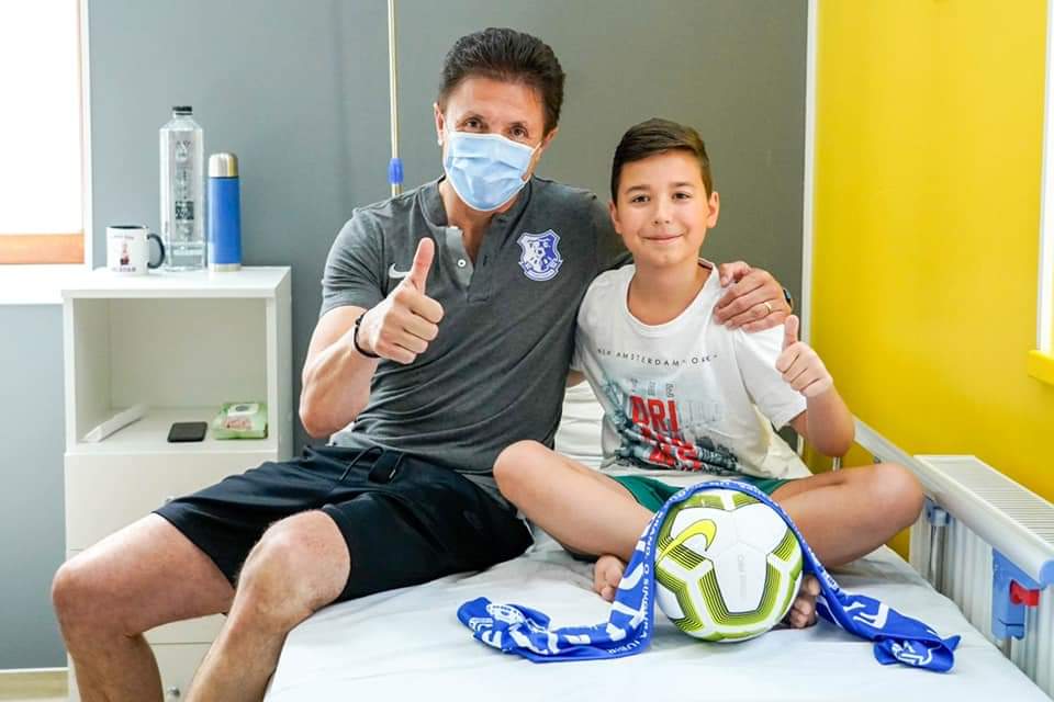 Fostul internaţional Gheorghe Popescu, preşedinte al FC Farul, a vizitat, duminică, secţia de pediatrie a Spitalului Judeţean Arad.