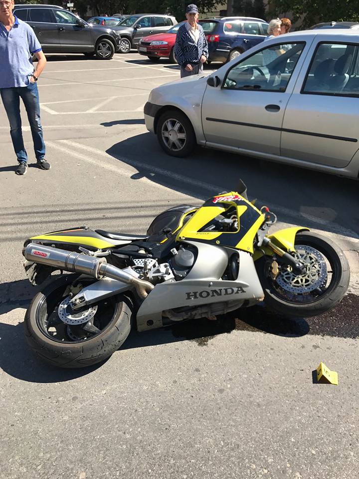 Un autoturism marca VW Golf 3 a intrat în intersecție şi a lovit un motociclist care circula pe strada Baader. Pompierii au auzit zgomotul şi au ieșit în grabă pentru a acorda primul ajutor persoanelor implicate în accident.