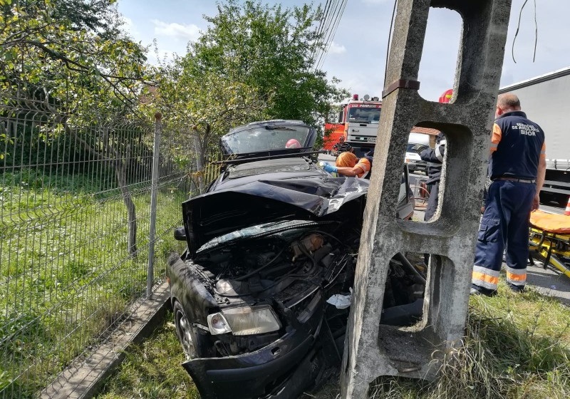Şoferul, un bărbat în vârstă de 60 ani, aflat la volanul un VW Passat, circula pe direcţia Oradea-Cluj când a pierdut controlul asupra direcţiei de deplasare, a părăsit partea carosabilă, izbindu-se frontal de stâlp din beton de susţinere a reţelei electrice, de pe partea dreaptă a direcţiei sale de deplasare.