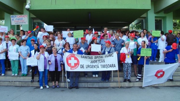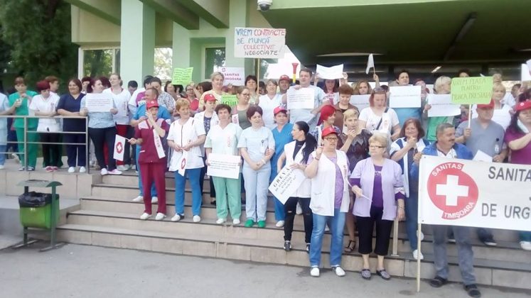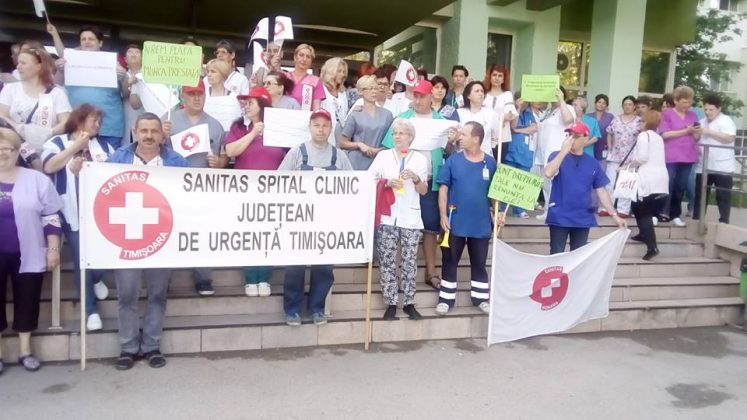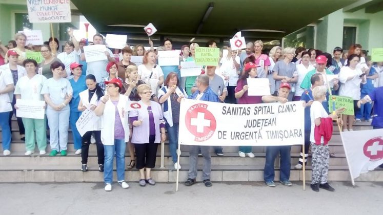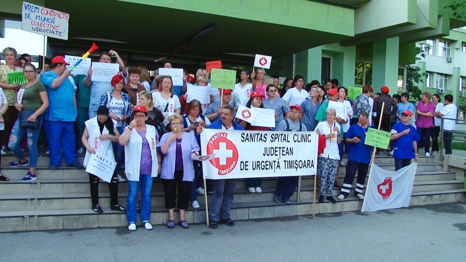Salariaţii Spitalului Judeţean de Urgenţă Timişoara, din cadrul Federaţiei Sindicale Sanitas, au pichetat, luni dimineața, intrarea în unitatea medicală, cerându-şi drepturile salariale.
