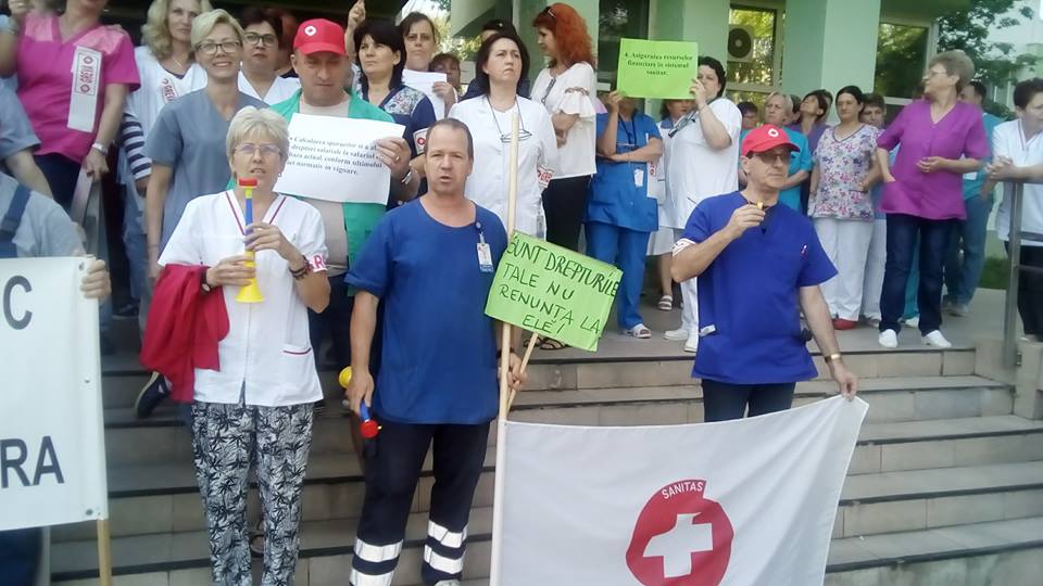 Nemulțumiți de această situație, angajații din sistemul sanitar au ieşit astăzi în stradă, începând cu ora 9, cerând „calcularea sporurilor şi a altor drepturi salariale la salariul de bază actual conform ultimului act normativ în vigoare”.