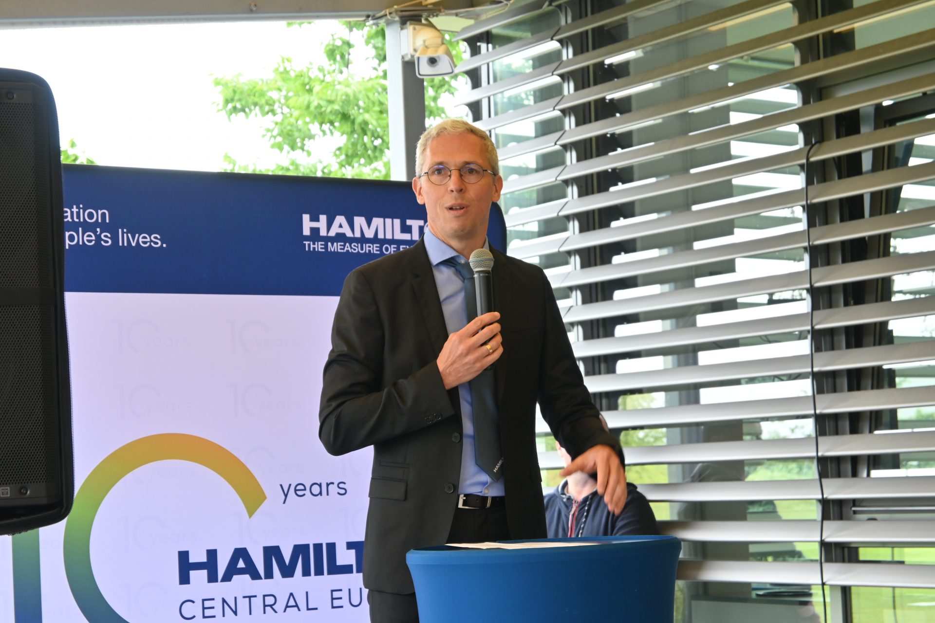„Hamilton va deveni un producător important de dispozitive generale de laborator. Hamilton Central Europe a demonstrat în ultimii ani că este mai mult decât capabilă să joace un rol cheie în această strategie: Ne vom extinde semnificativ portofoliul de produse în următorii ani și, prin urmare, vom proiecta, produce și gestiona noi dispozitive de laborator în România. Investiția în noua unitate a fost condiția necesară pentru acest lucru, iar alte investiții în noi produse vor urma.” a explicat Martin Frey, CEO Hamilton, prezent și el la evenimentul aniversar.