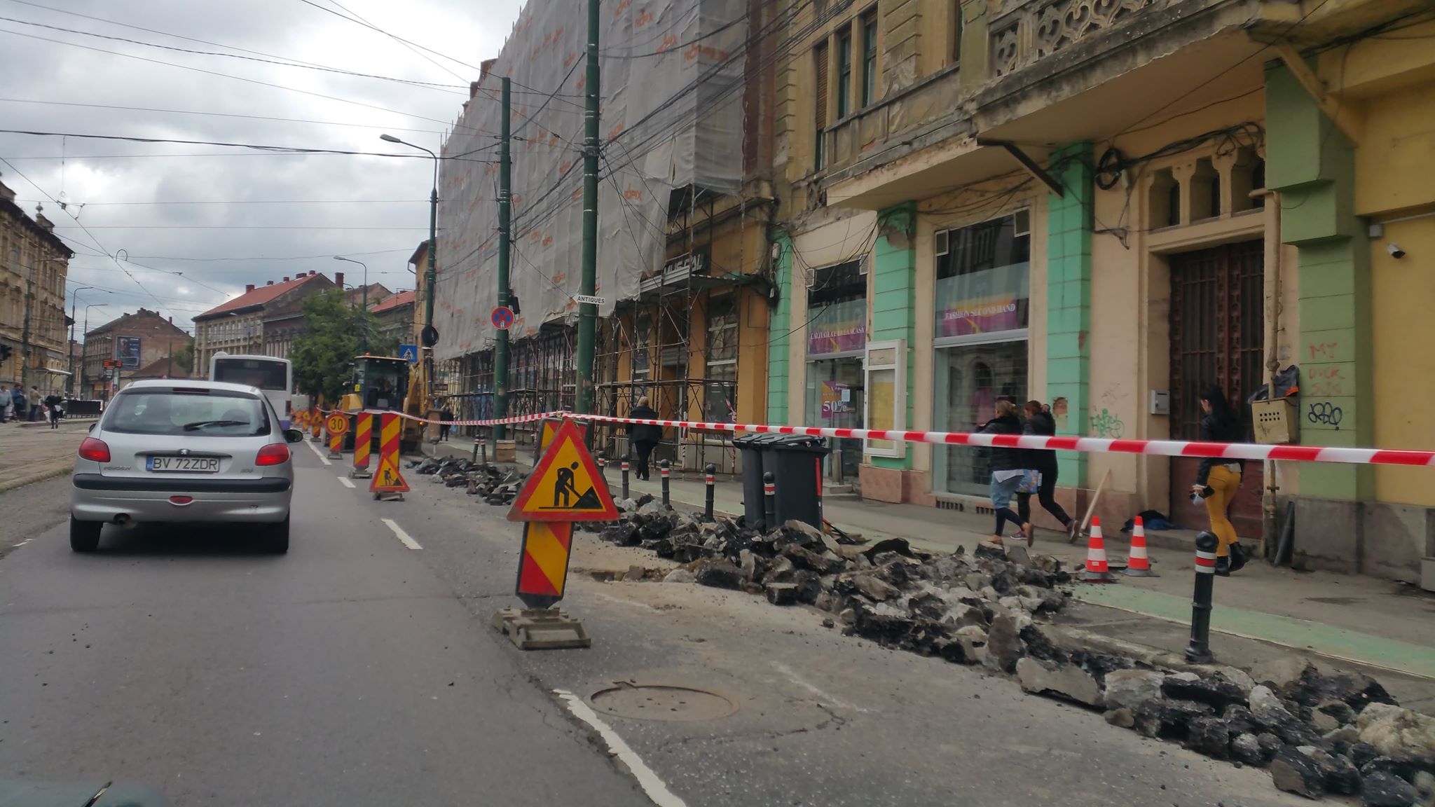Tramvaiele, autobuzele și autoturismele se înghesuie în intersecție și de abia te poți strecura printre mijloacele de transport pentru a trece. Lucrările nu au fost anunțate de Primăria Timișoara. Chiar dacă nu este o lucrare care aparține direct instituției, tot angajații de aici sunt cei care eliberează avizele de spargere a asfaltului.