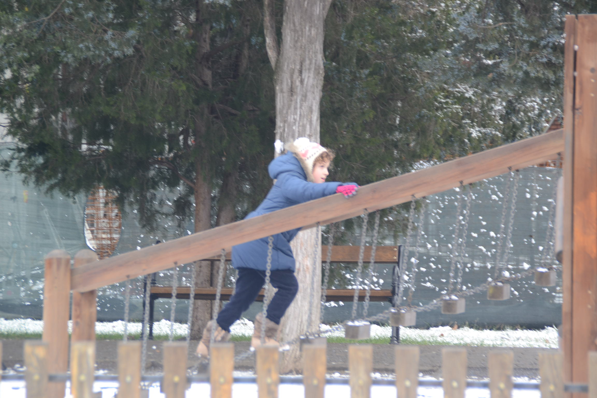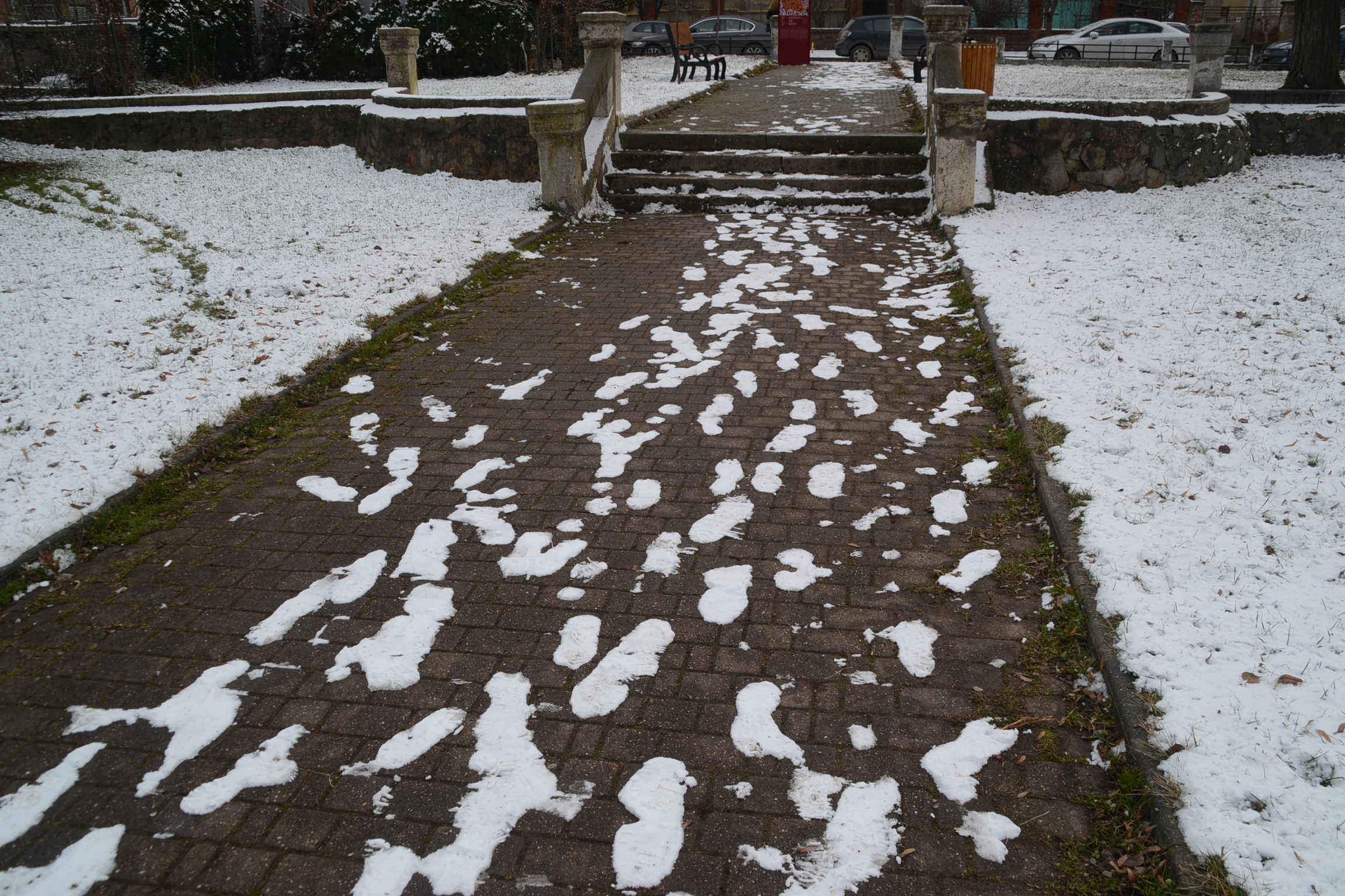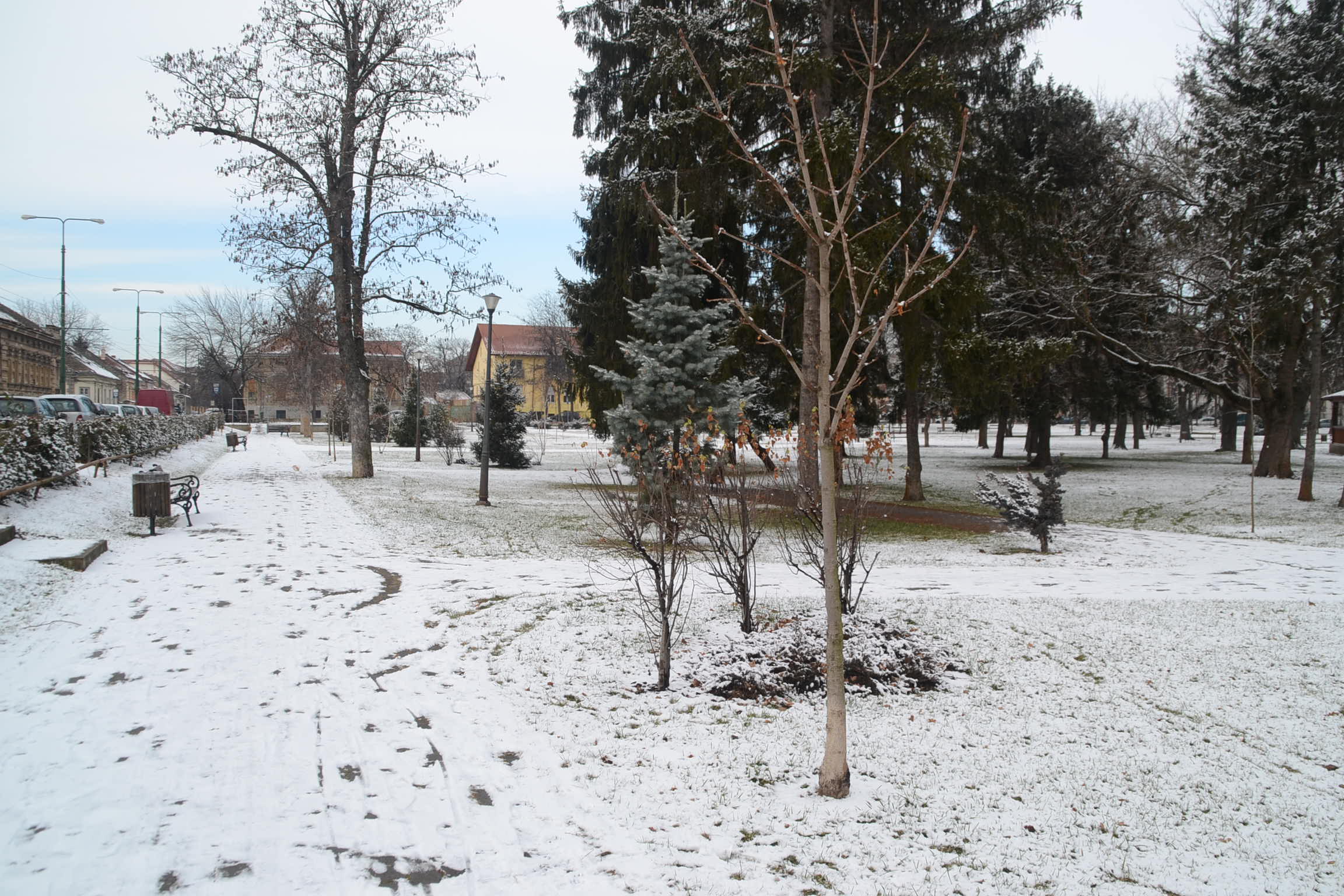 Chiar dacă nu sunt acoperite în întregime de alb parcurile noastre își păstrează farmecul chiar și în acestă imitație de iarnă cam fadă.