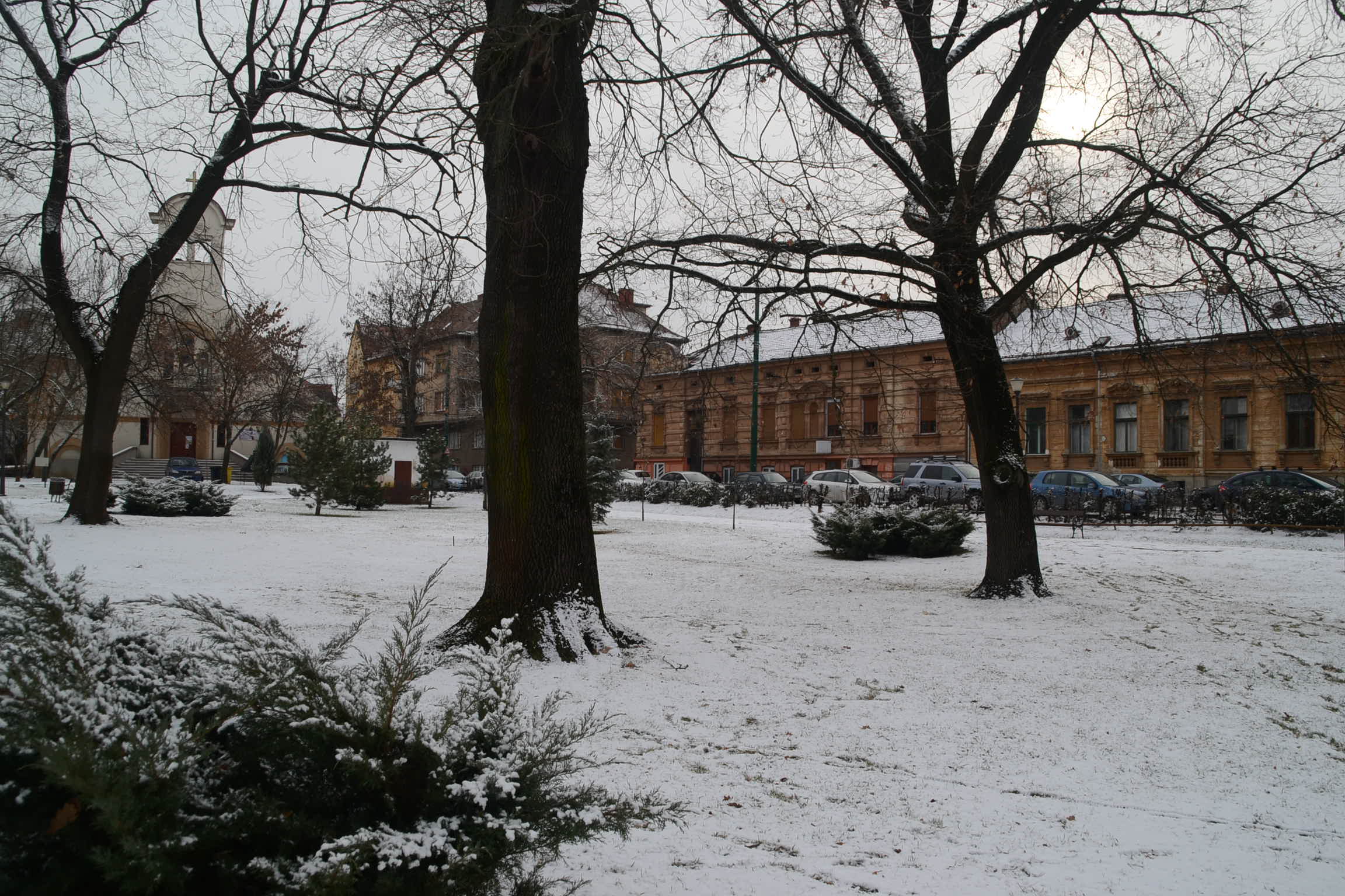 De parcă Banatul ar fi undeva pe la tropice, la noi iarna este de cele mai multe ori diferită. Vreme călduță și cam uscată este în răspăr cu ce se întâmplă peste munți. În această iarnă pentru a doua oară a nins în noaptea trecută. De la ferestre și la lumina puțină a serii totul părea acoperit de nea. Pospaiul de alb nu era mai gros de un centimetru. Dimineața, cele câteva raze răzlețe de soare au topit cam tot. Doar parcurile timișorene au scăpat cu pătura de zăpadă câteva ore în plus.