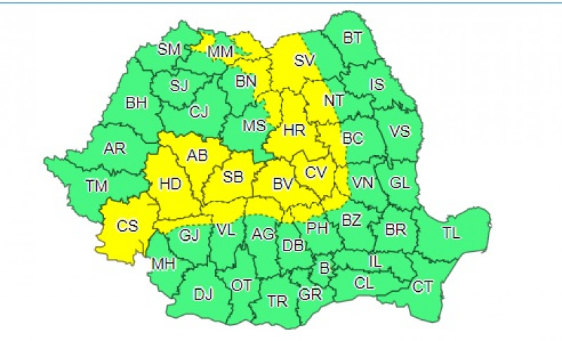 Administrația Națională de Meteorologie a emis un cod galben de ninsori însemnate cantitativ și intensificări ale vântului, la munte, valabil de marți, ora 23.00 până miercuri, ora 18:00.